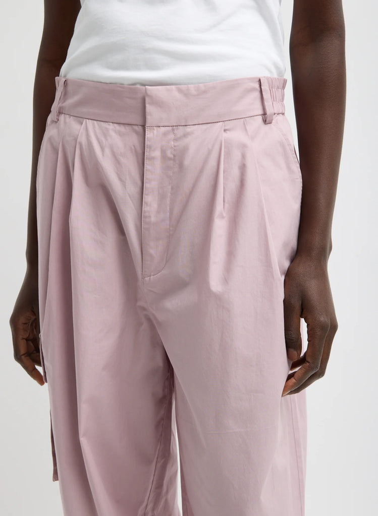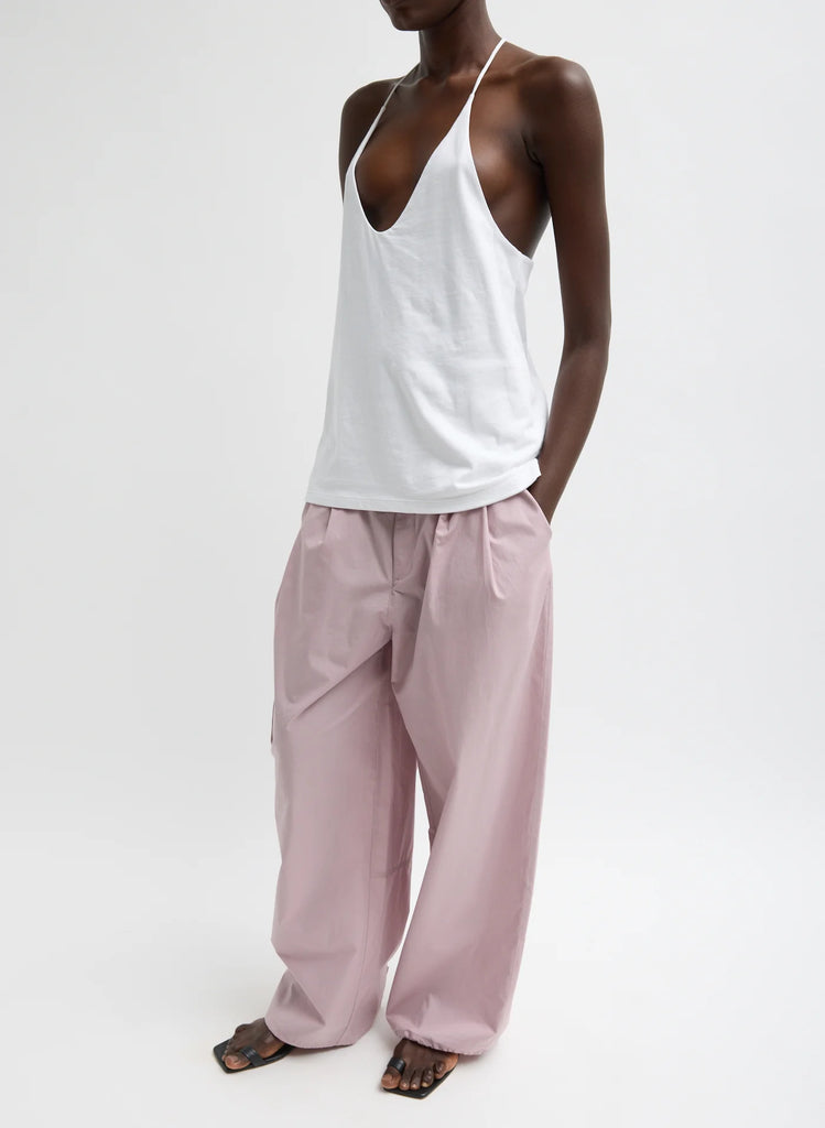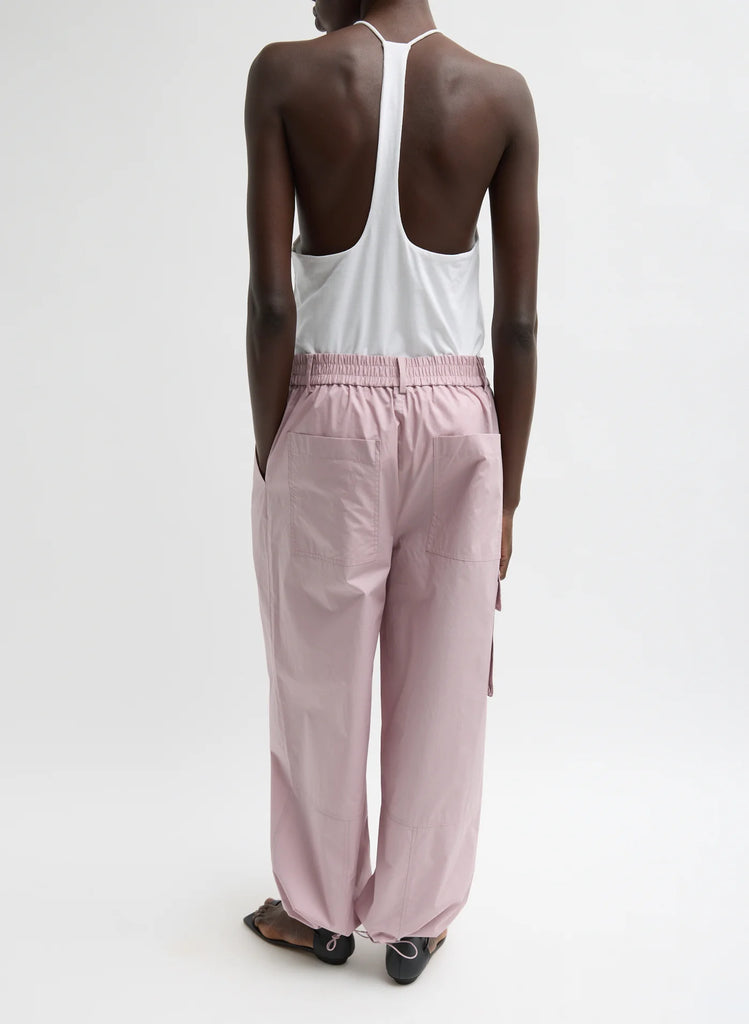 A new take on utility with a considered approach to fit and function. Crafted from summer-weight 100% cotton with a special vintage finish, these wide-leg cargo pants offer structure with a sense of ease. Designed with an elastic waist at the back and a zipper closure at the front for a tailored yet effortless feel. Functional cargo pockets add utility without bulk, while an adjustable drawstring at the ankle allows for versatile styling—wear them loose for a relaxed silhouette or cinched for a tapered look. Wear high on the waist for a polished feel or slouched lower for an undone attitude.