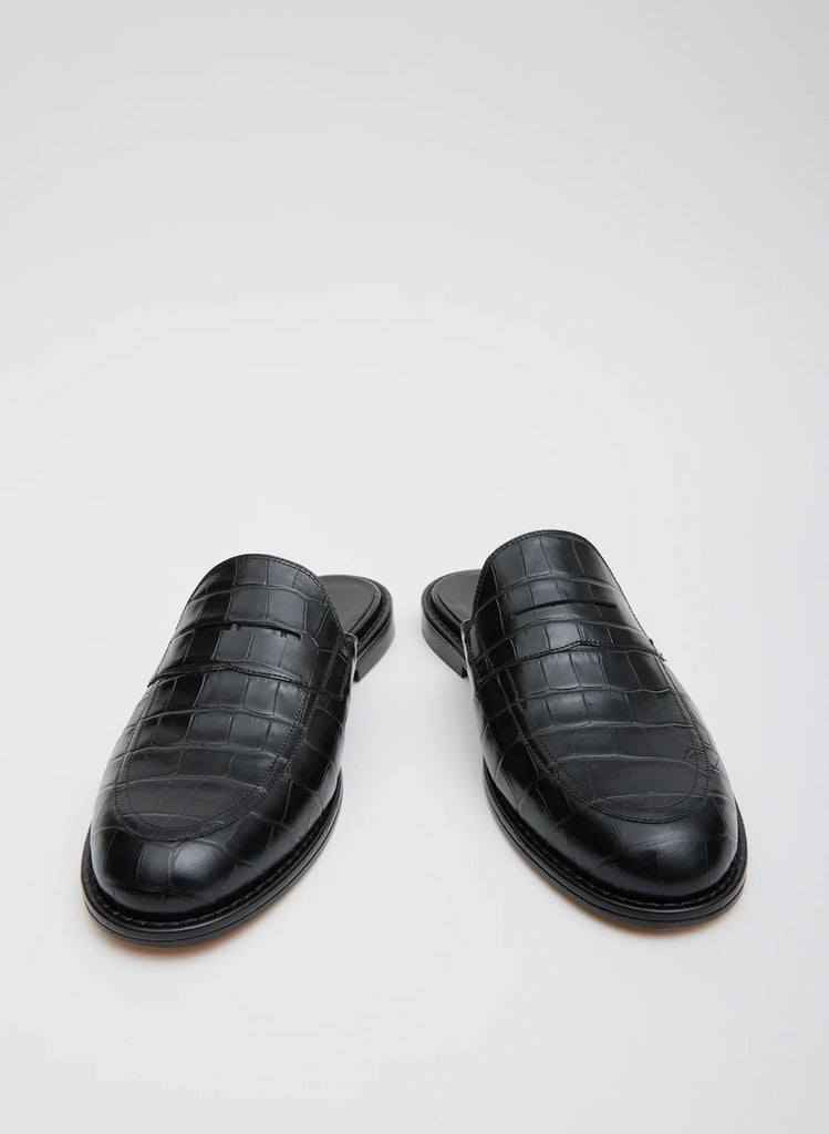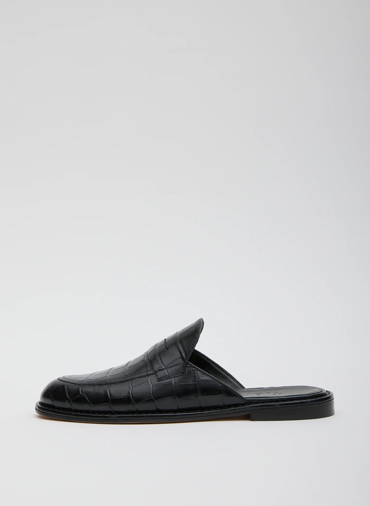 Handcrafted in Italy, the Herbert Slide features a sleek backless design and rounded toe, bringing modernity and comfort to the classic loafer shape. Available in Black/White, Brown, and Black Croc, this shoe bridges the gap between polish and ease. Pair with socks for an intentional finish or wear barefoot for that signature CP nonchalance.