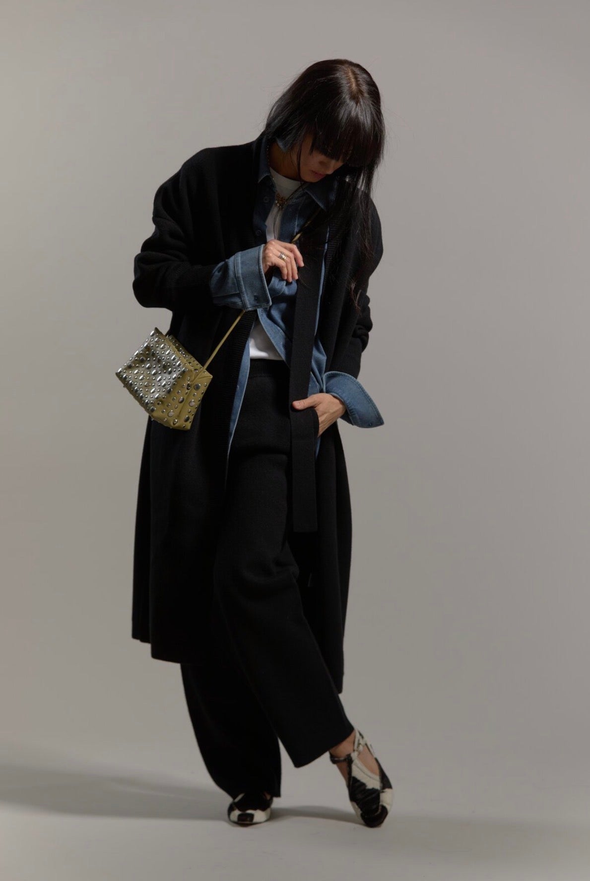The double face cashmere pants from LIYA is the perfect cashmere pants to dress it up with a blazer or dress it cozy with the matching double face wrap jacket from LIYA.