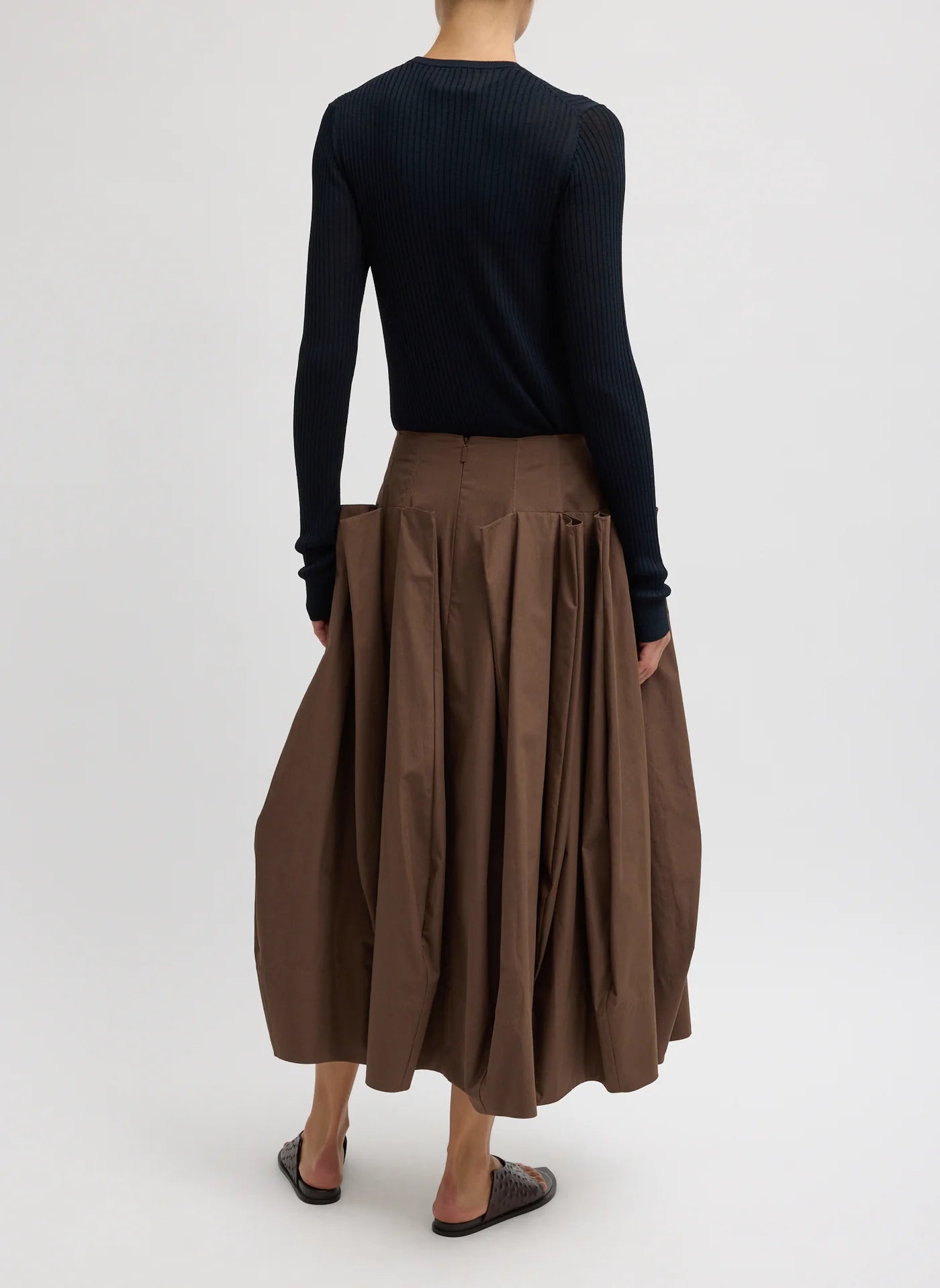 Compact Eco Poplin Pinched Pleat Skirt Brown