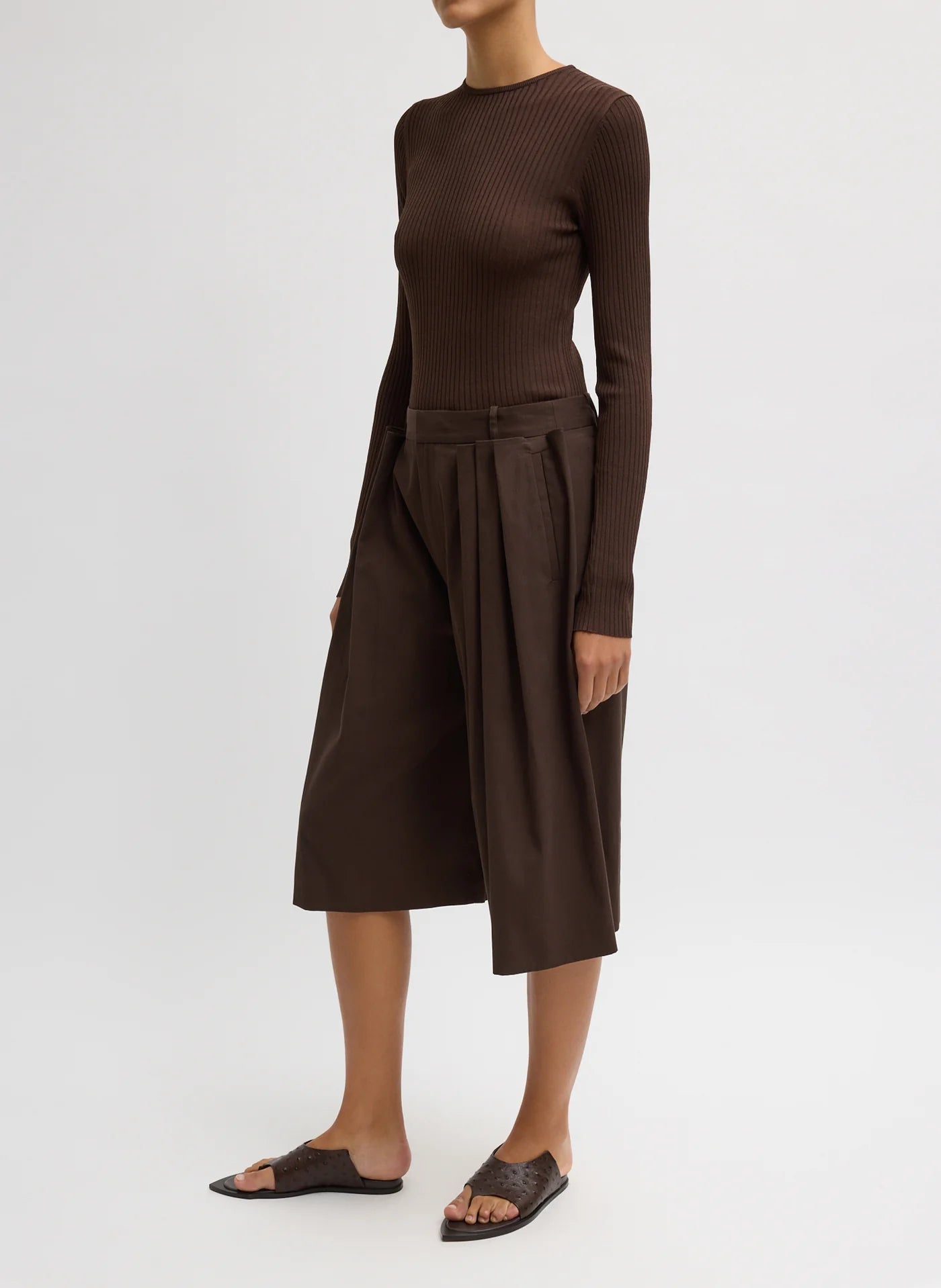 Ribbed Sweater Crewneck Pullover Brown