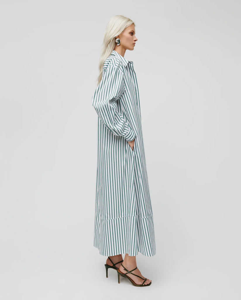 Dina Kim Striped Shirt Dress in Forest Stripe