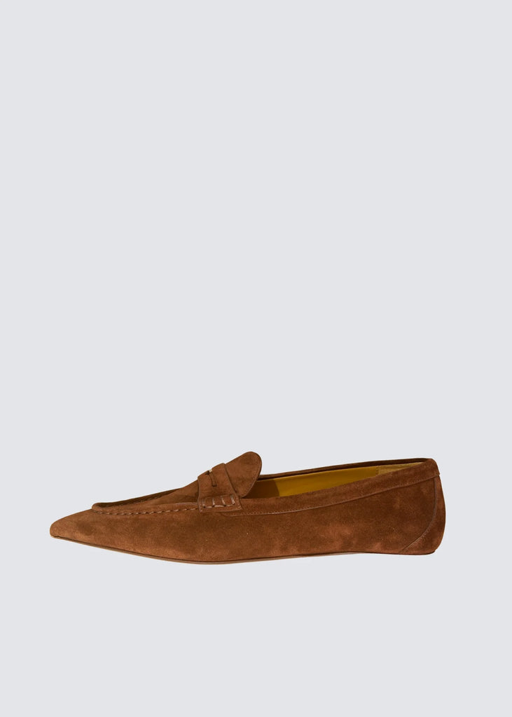 Pointed Toe Loafer in Brown Suede