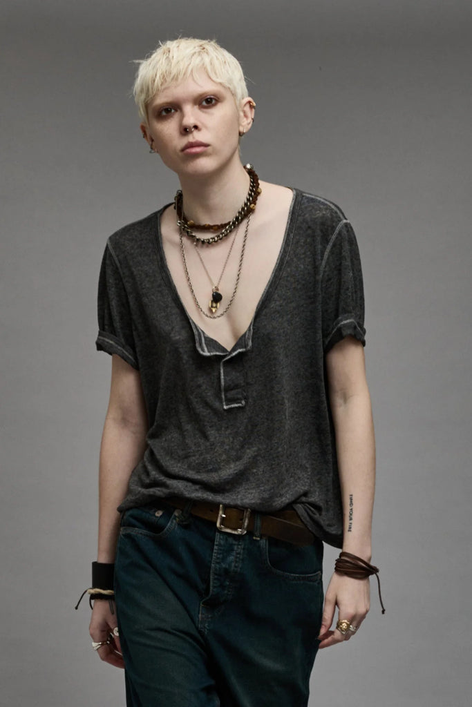 Low Neck Henley Tee Charcoal