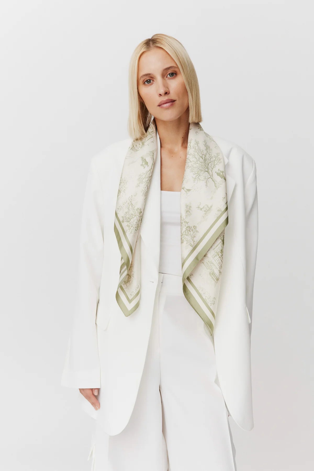 Silk Scarf Toile Valentine Pistachio