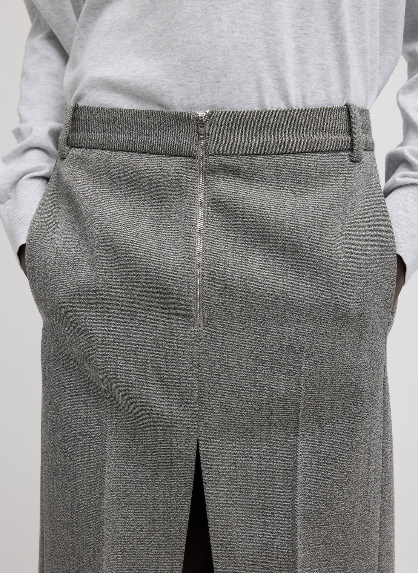 Structured Wool Zip Front Midi Trouser Skirt