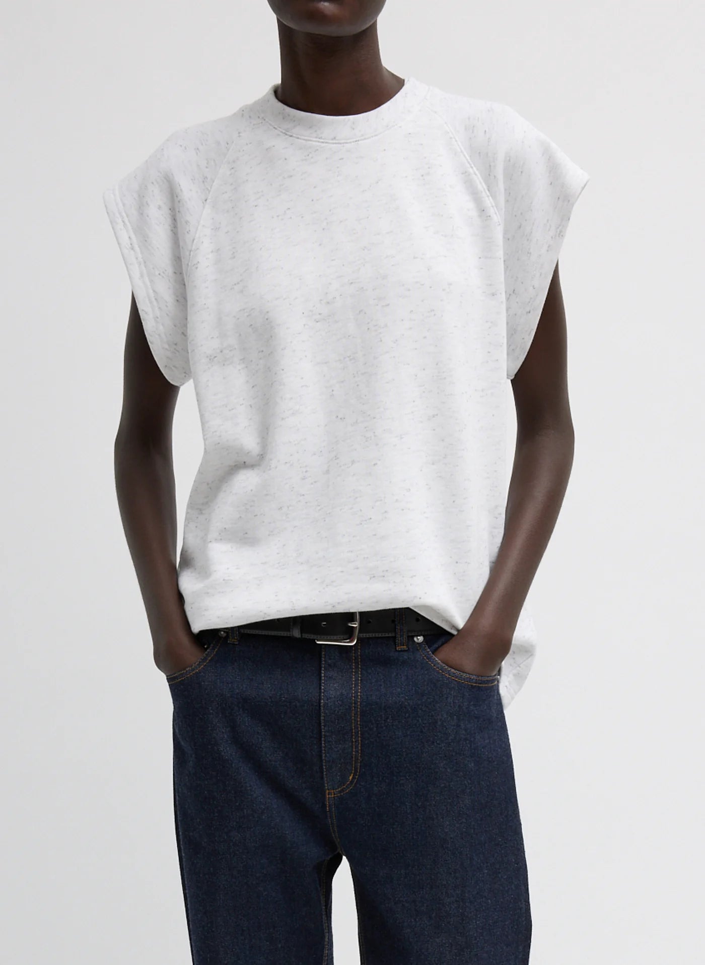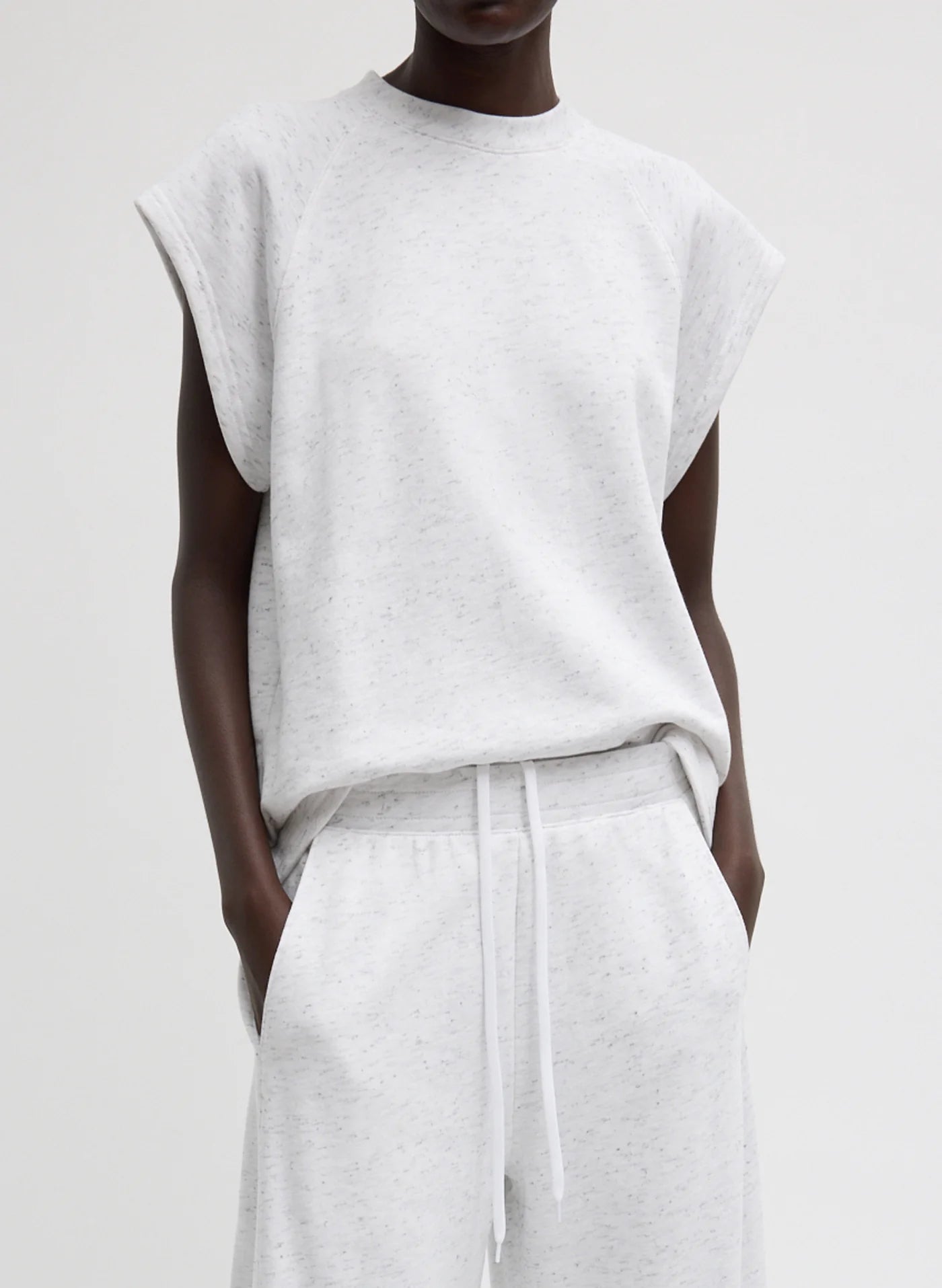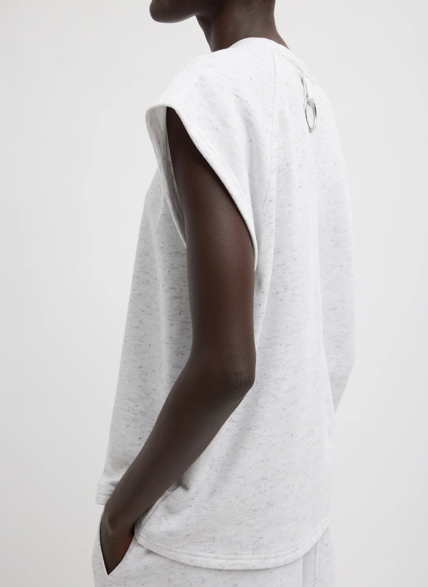 Spring Tweedy Sweatshirting Sleeveless Easy Top White
