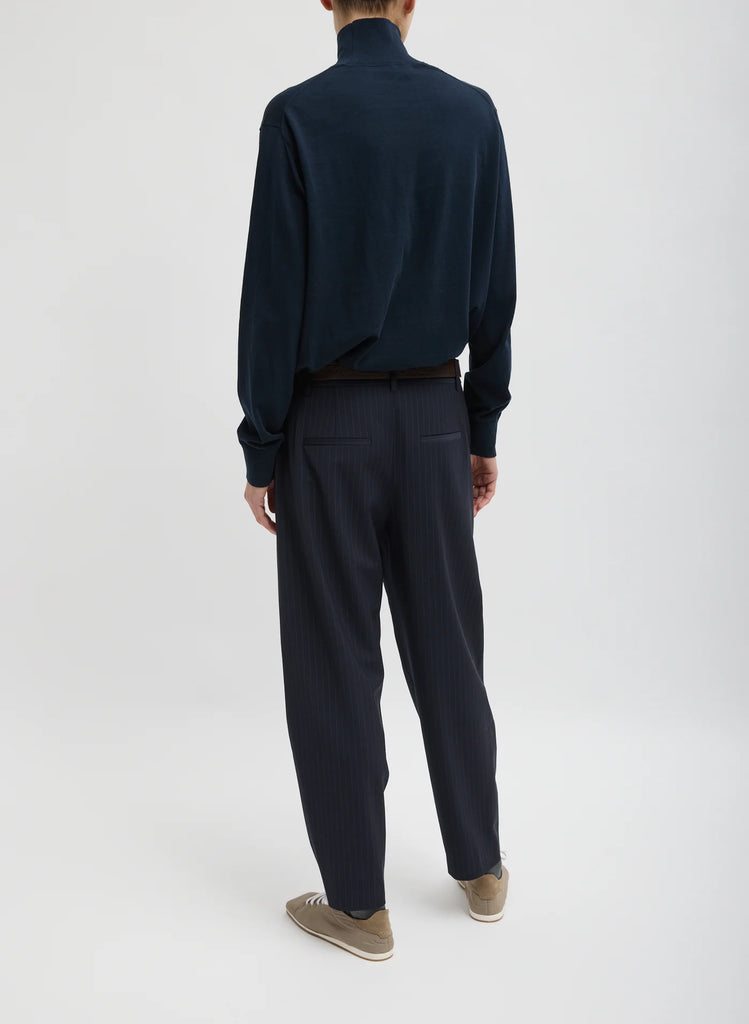 This assortment serves as your WOFs (Without Fails) and are designed to create space in your wardrobe for creativity and experimentation. No matter how extreme your closet may become, these pieces serve as the grounding element that ties everything together. Blending tailoring with comfort, the Tropical Wool Reese Sculpted Trouser features a curved straight-leg silhouette that hits at the ankle, creating for optimal shoe pairings at any height.