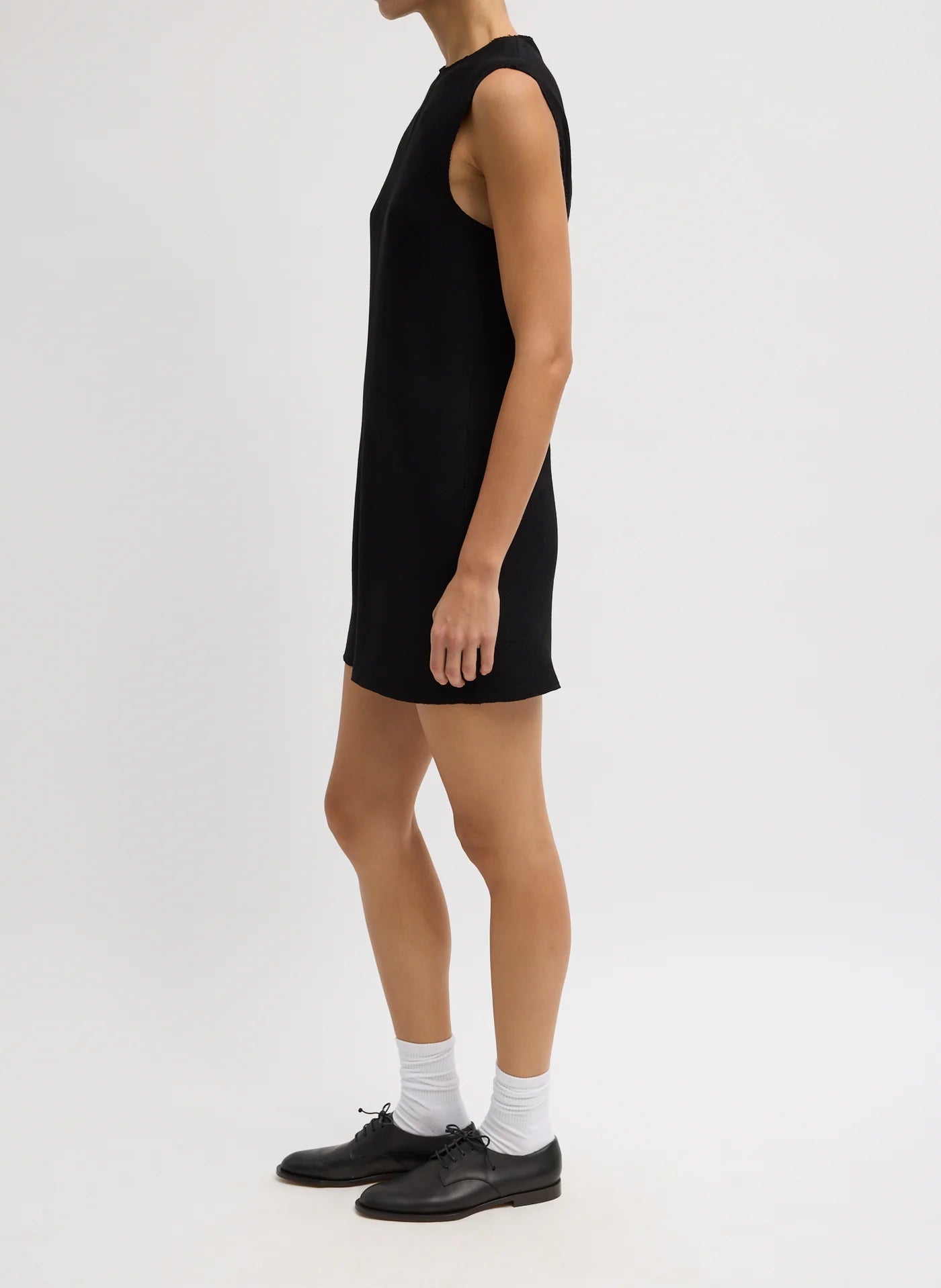 Viscose Plisse Sleeveless Short Dress Black