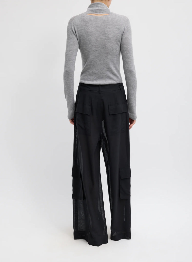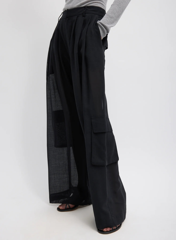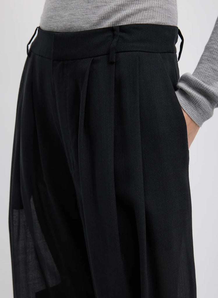 Sheer Wool Gauze Triple Pleat Pant Black