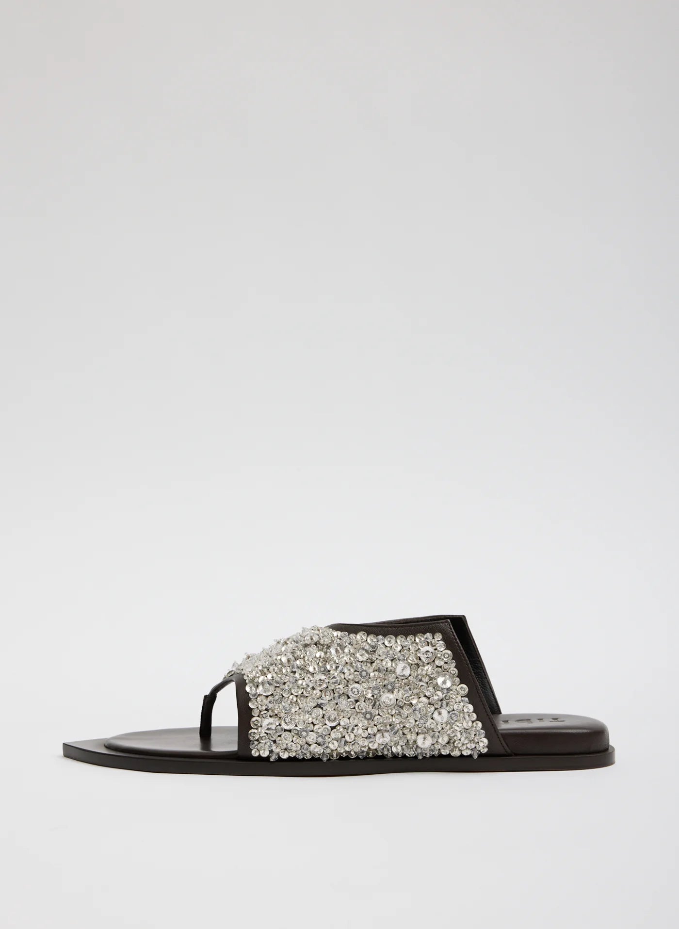Crafted from supple lamb leather with subtle hand-beaded embroidery done in India, this iteration of the Gerard sandal adds texture and dimension to a classic silhouette. Finished in Italy, it balances artisanal detail with an easy, wearable shape. Designed to anchor everyday looks while adding quiet interest, it elevates without feeling overdone.