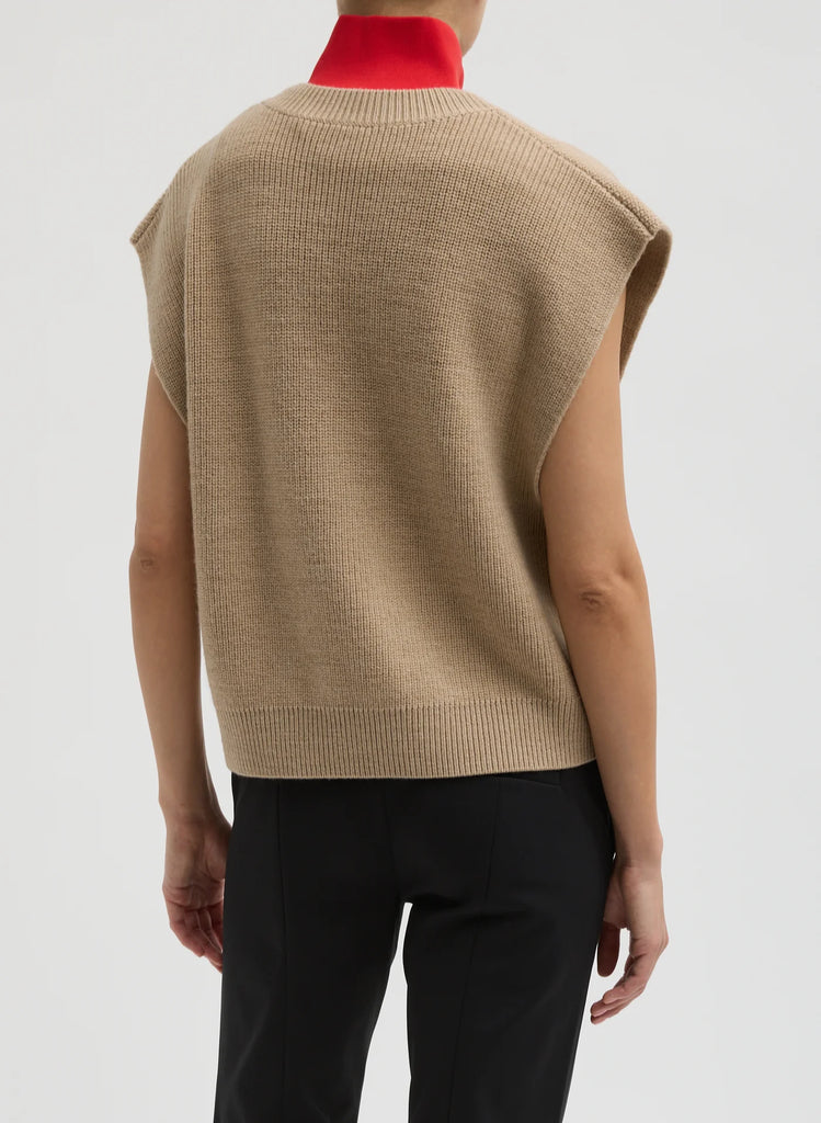 Cardigan Stitch Sweater Vest With Removable Dickie Latte