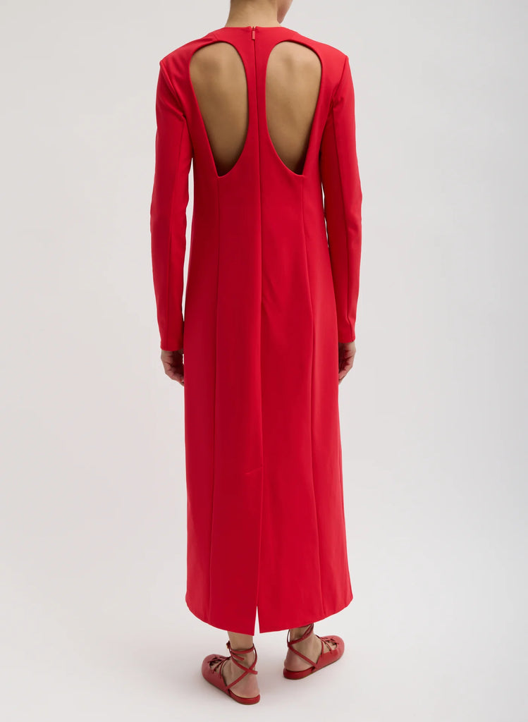 Compact Ultra Stretch Knit Dress With Cut Out Red