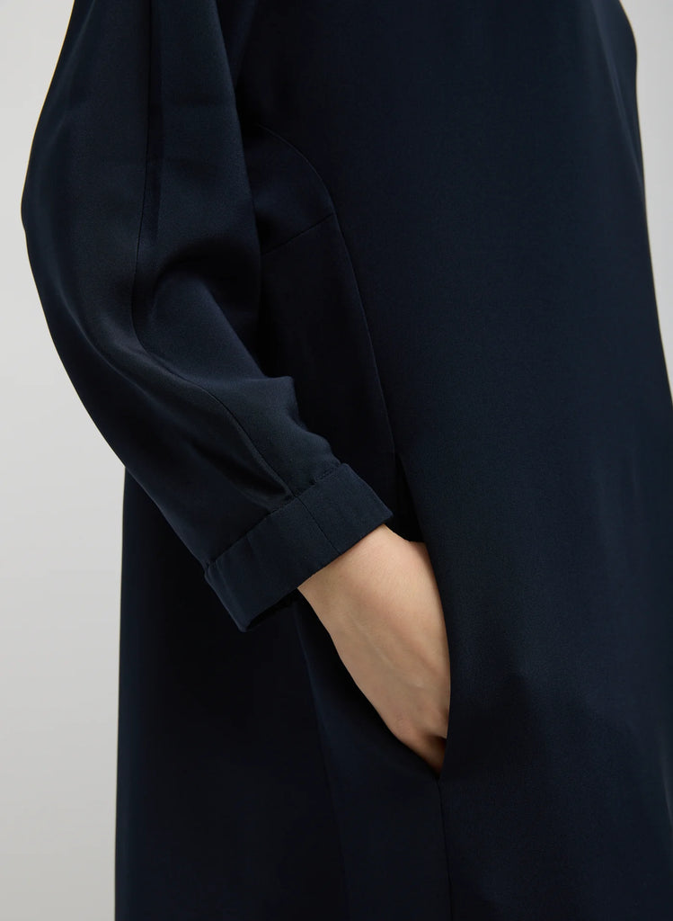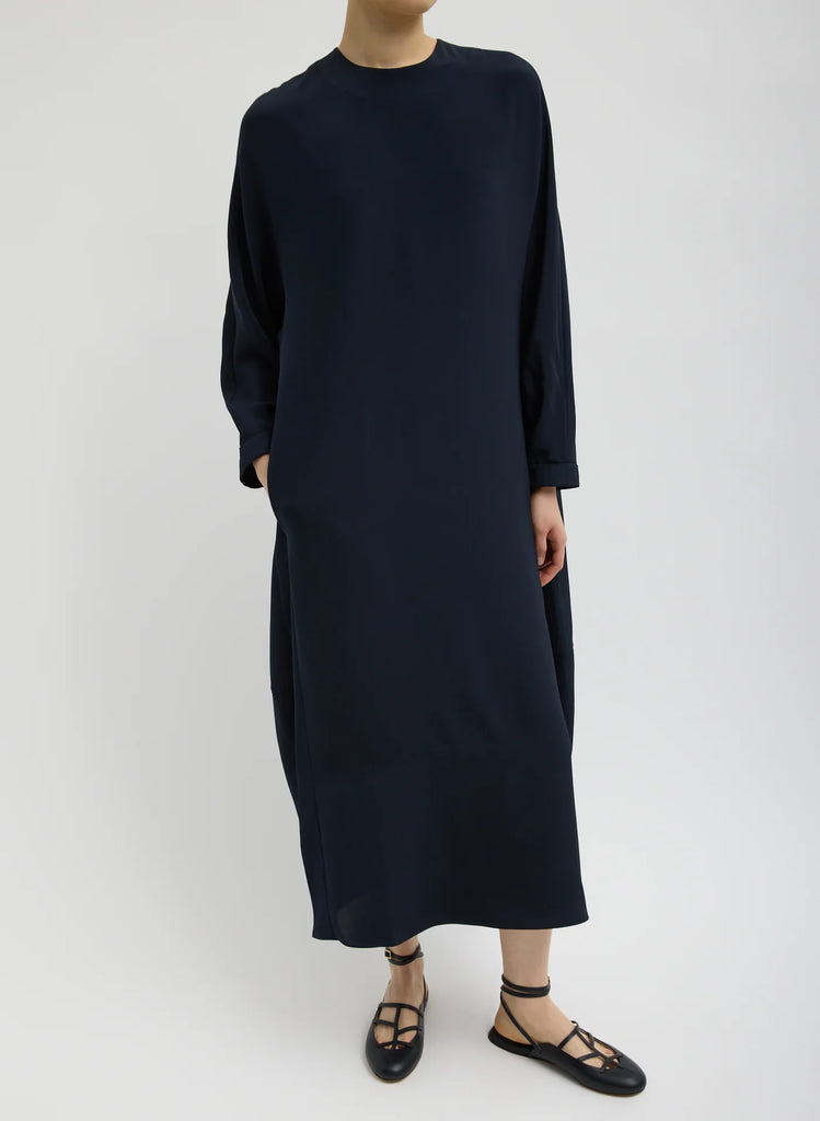 4 PLY Silk Long Sleeve Cocoon Dress Dark Navy
