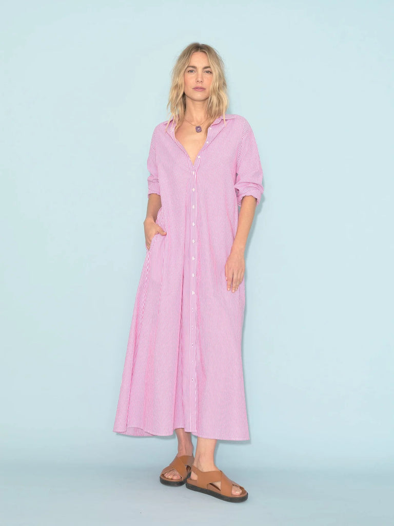 Earn your stripes. Boden is updated this season in our crisp cotton pencil stripe. Inspired by our bestselling Beau Shirt, Boden is a tailored shirtdress with a button-front, side seam pockets, and hem side slits.