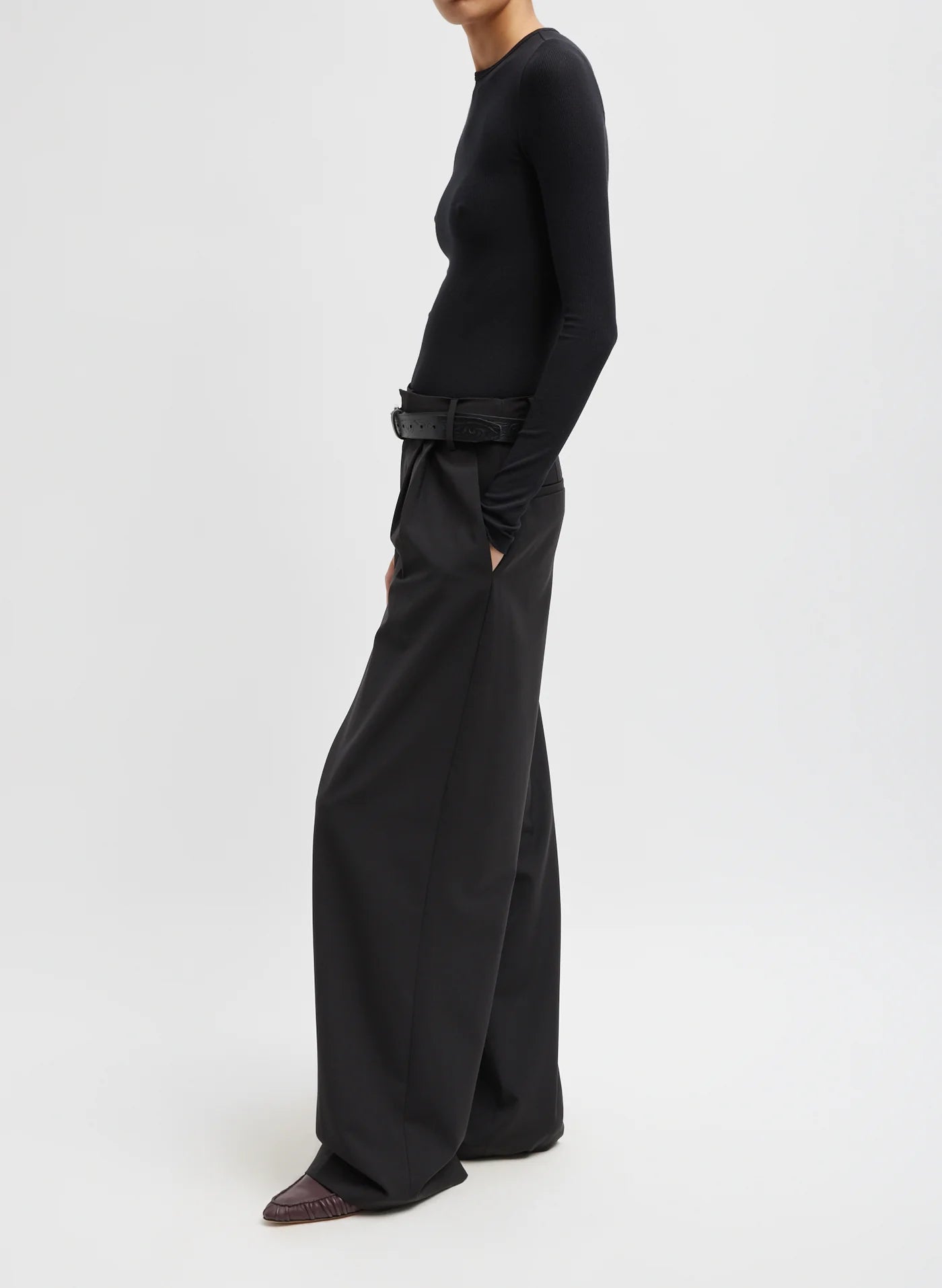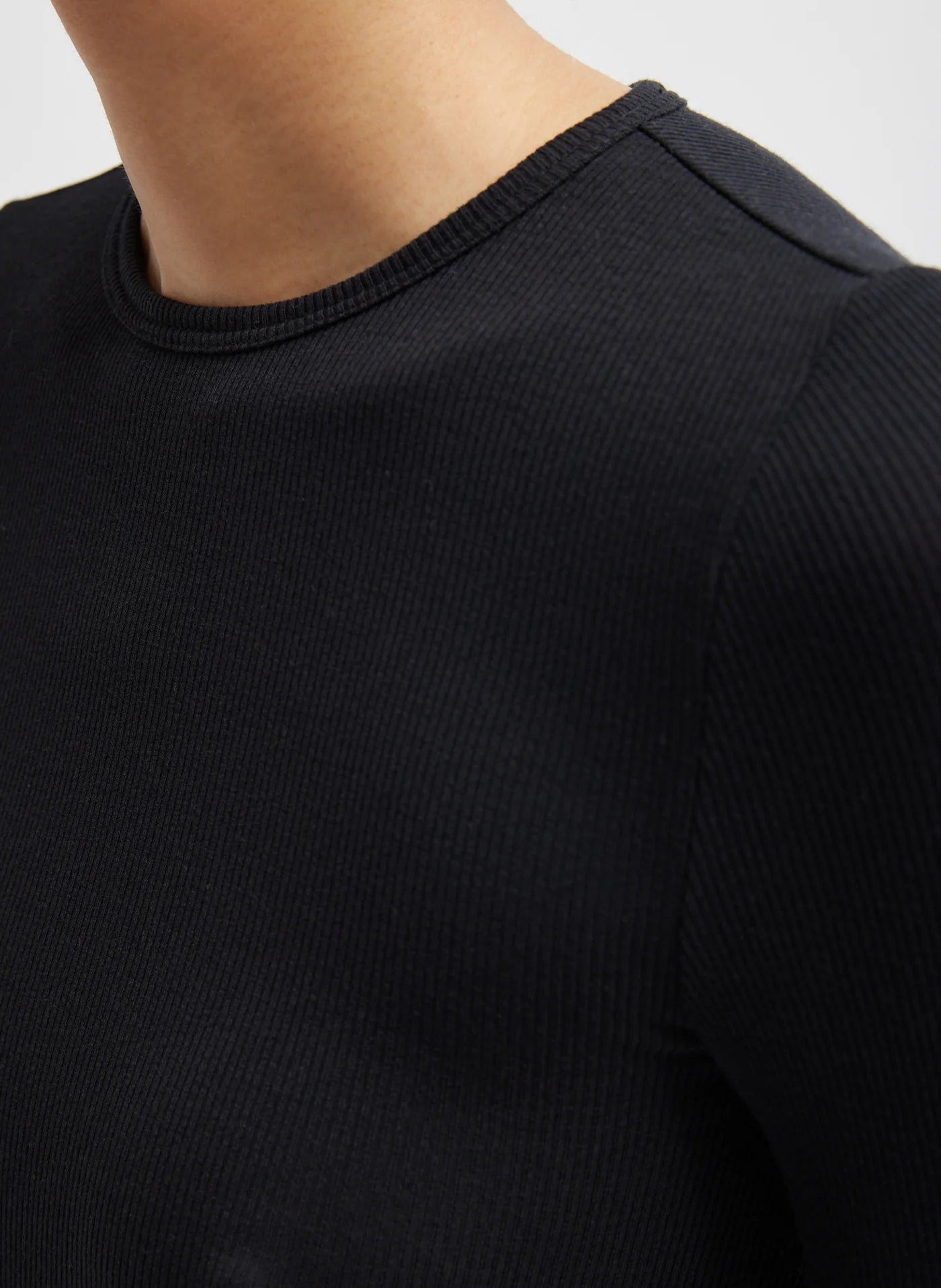 Circular Ribbed Crewneck Pullover Black