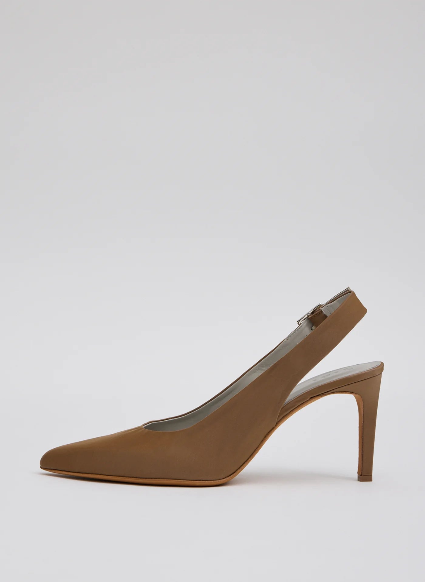 The Reyner Pump is designed to ground a look while leaving room to push styling further. This closed-toe slingback is crafted from silk, bringing contrast and lightness to a sculptural silhouette. Available in Red and Brown, think of Reyner as a creative constant—the heel you reach for when you want ease without rigidity. This style benefits from thoughtful care; avoid exposure to moisture and abrasive surfaces to preserve the integrity of the silk. Distinct yet understated, it pairs effortlessly with denim, dresses, or tailored trousers to strike that balance between considered, confident, and just outside the comfort zone.