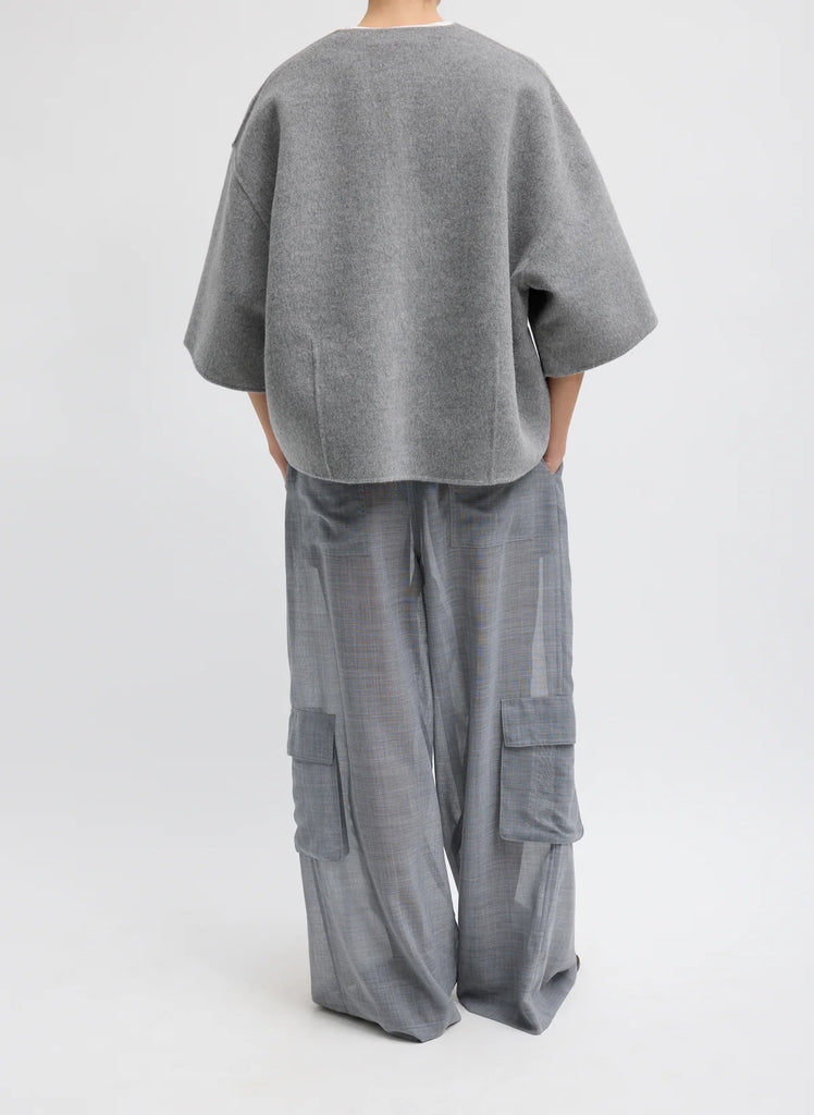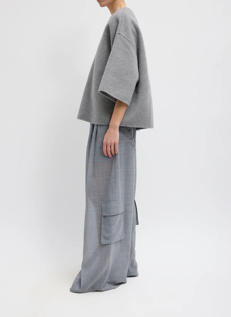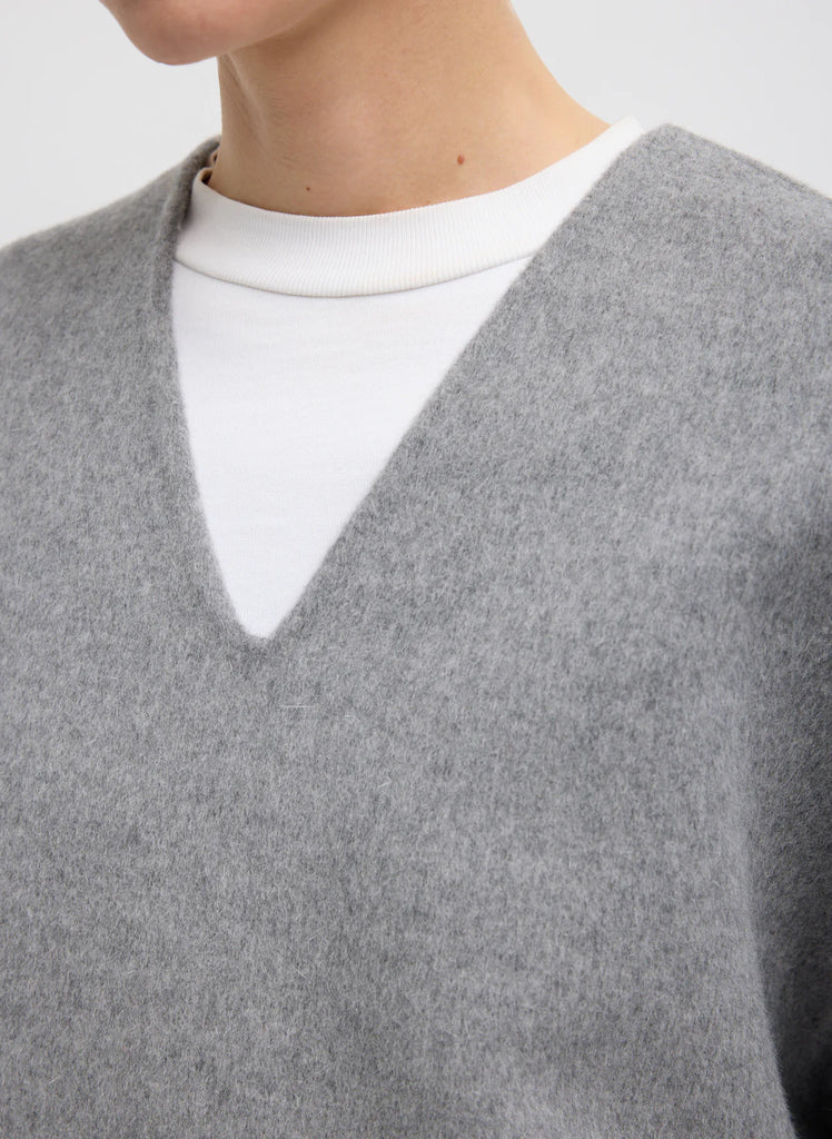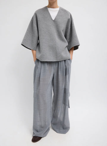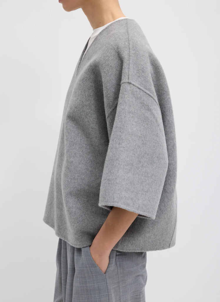 Luxe Double Faced Wool VNeck Top Heather Grey