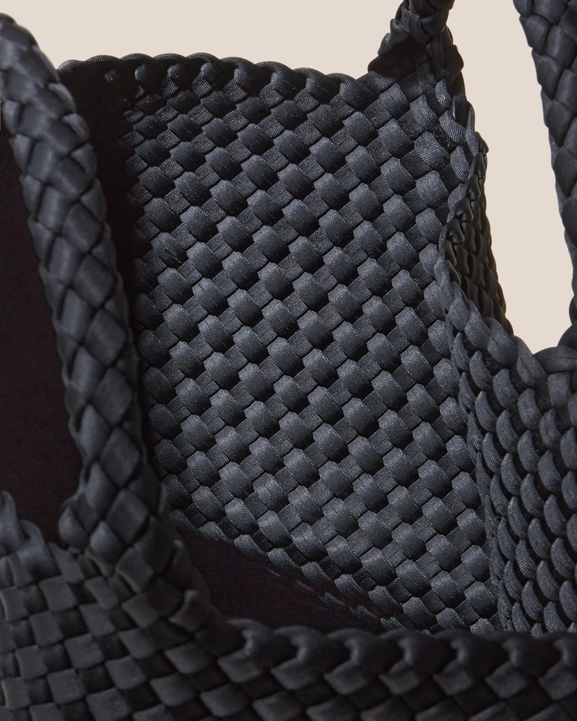 Handwoven neoprene in true black. Our original design, the St. Barths Medium Tote is a versatile, everyday bag for work, beach, or travel.