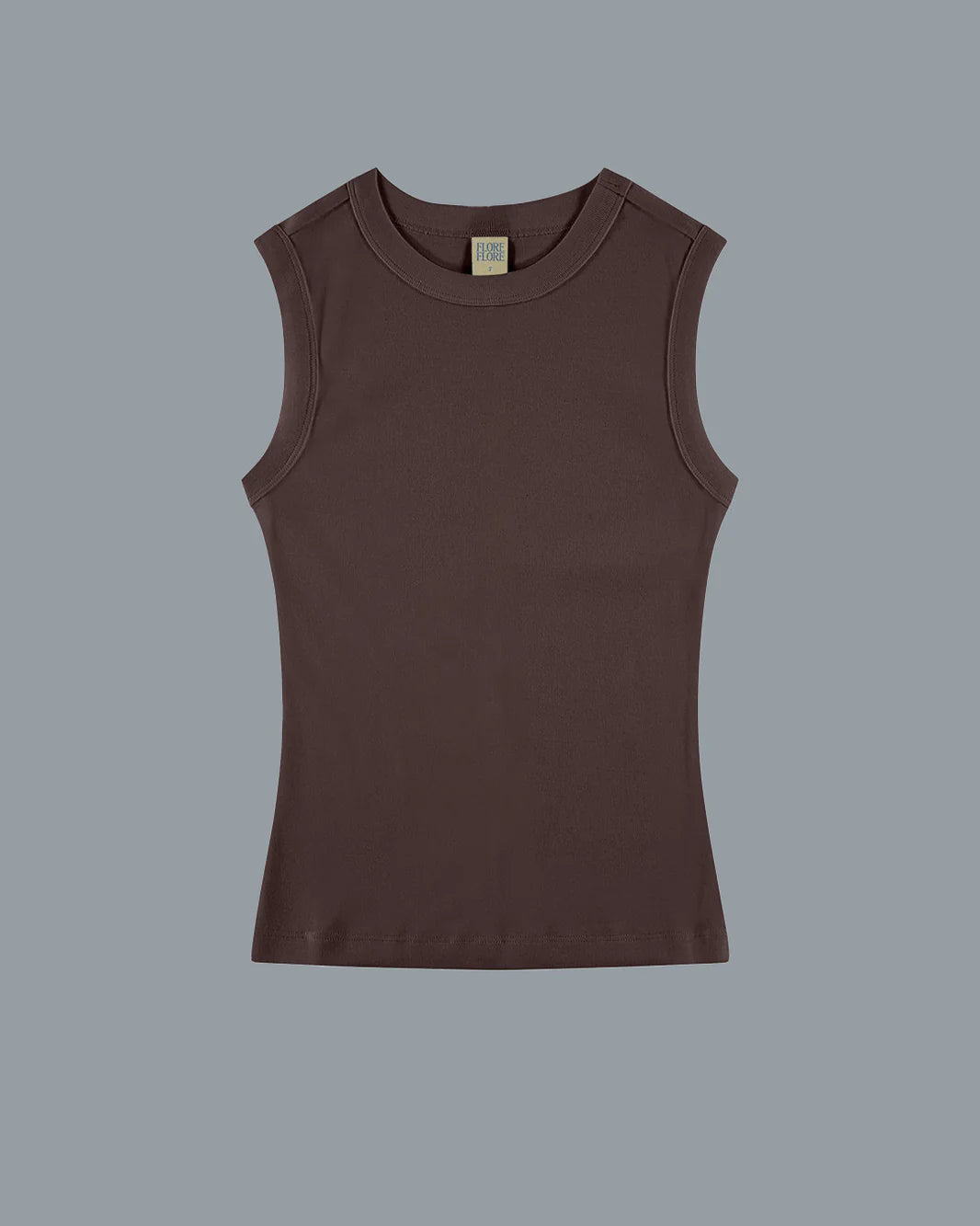 A fitted crew neck tank with scooped-out armholes and a cut-off seam on the back, crafted from medium-weight organic cotton rib. Layer or wear on its own.