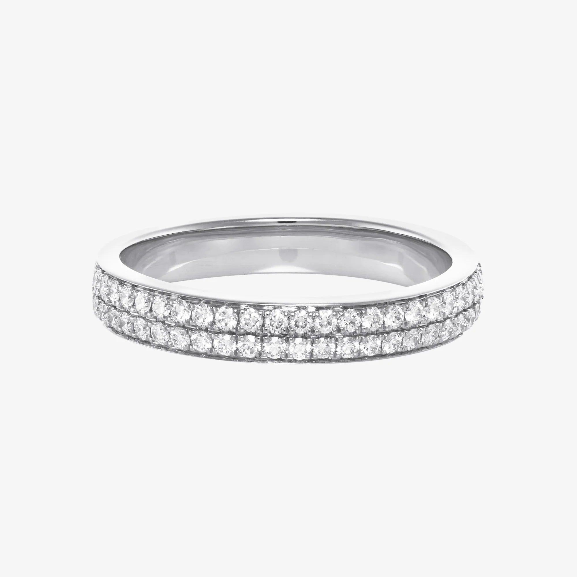 “The One Bold Pavé Ring” features two rows of diamonds set on 2/3 of the band. This piece stacks perfectly with the “Hover Emerald Ring”.