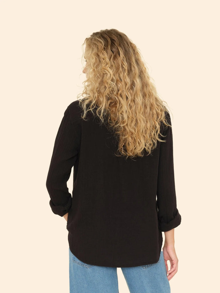 Bare Necessities. Scout is made in Xirenas washed double faced cotton gauze for a soft, gently crinkled feel. This lightweight button-front shirt has a shirttail hem and box pleated back yoke.