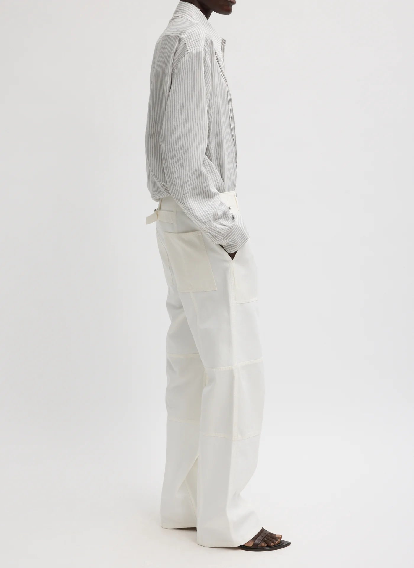 The Patchwork Twill Cargo Fischer Jean has the new Fischer fit with a modern cargo sensibility, featuring patchwork twill construction that adds structure and visual interest. Available in Black and White, it offers versatility with a directional edge. Designed to balance utility and polish, this jean pairs seamlessly with the coordinating jacket for a head-to-toe look, or styles back easily to button-downs and foundational T-shirts. A statement piece that remains grounded in everyday wearability.