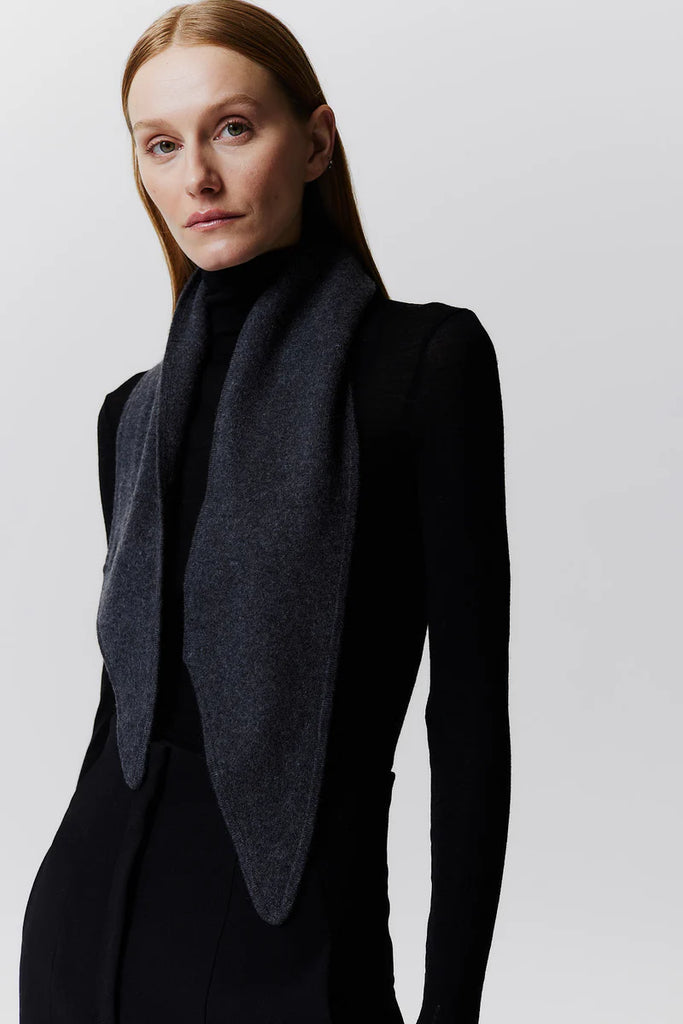 The Cashmere Bandeau is an elegant short scarf made from pure cashmere, featuring tapered ends and a double texture. Its timeless design and the subtle Prinz Berlin monogram make it a versatile accessory that can be styled as a turtleneck with any outfit.