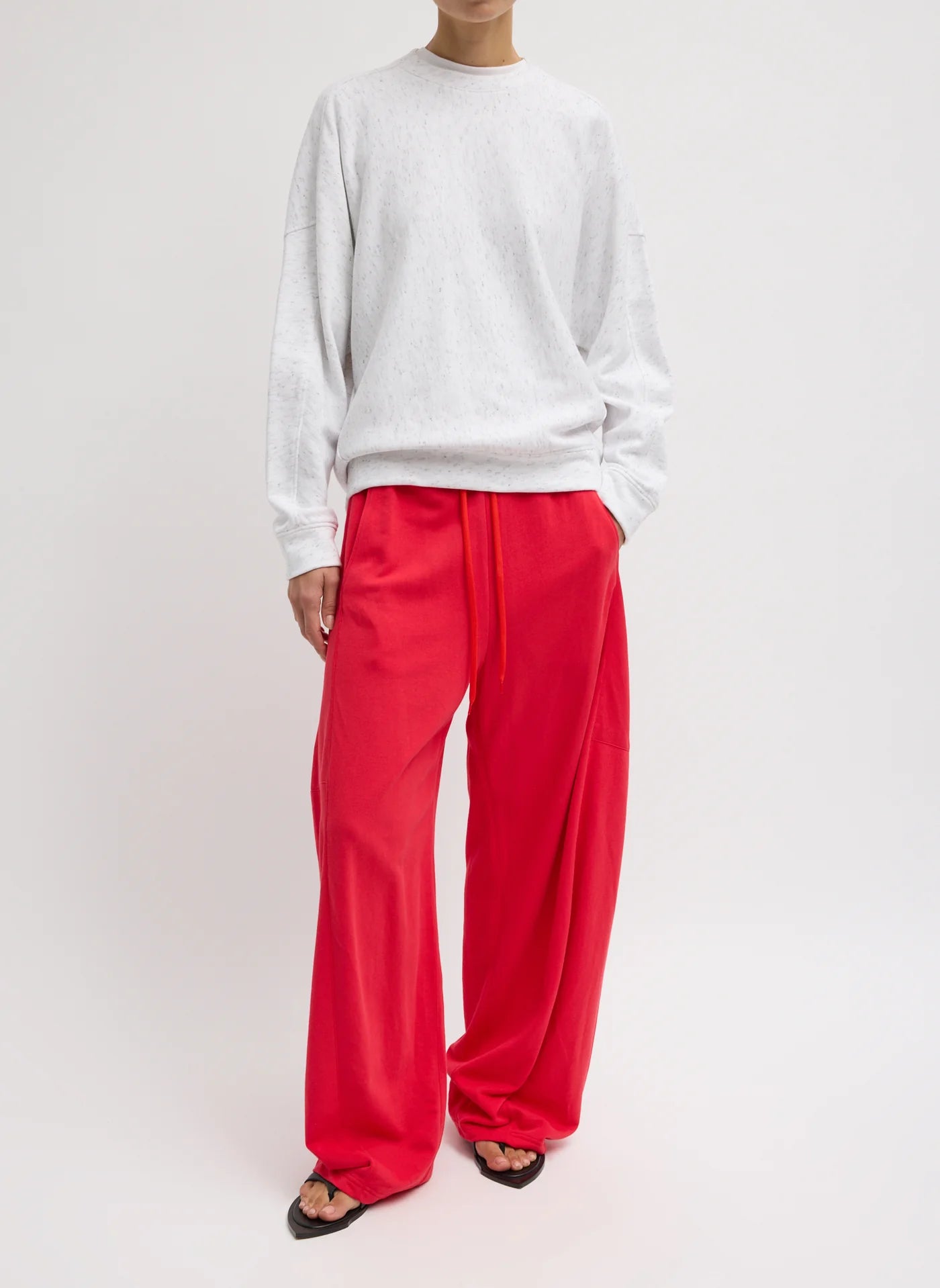 This assortment serves as your WOFs (Without Fails) and are designed to create space in your wardrobe for creativity and experimentation. No matter how extreme your closet may become, these pieces serve as the grounding element that ties everything together. Crafted in a soft and super light weight Peruvian terry, the Light Weight Sweatshirting Winslow Pants are refined enough to be worn with elevated separates and footwear as an alternate option to your trousers or as a cover up on your way to the beach. For those indecisive about tailoring, we heard your pleas and devised the ultimate style hack: a snap detail at the hem that allows you to adjust pant length on the fly without the commitment of permanent alterations. It's also worth mentioning that the waistband is elastic because we would never sacrifice style for the sake of comfort. Look no further for the ultimate CP sweatpant–creative on the surface, pragmatic in the fit.