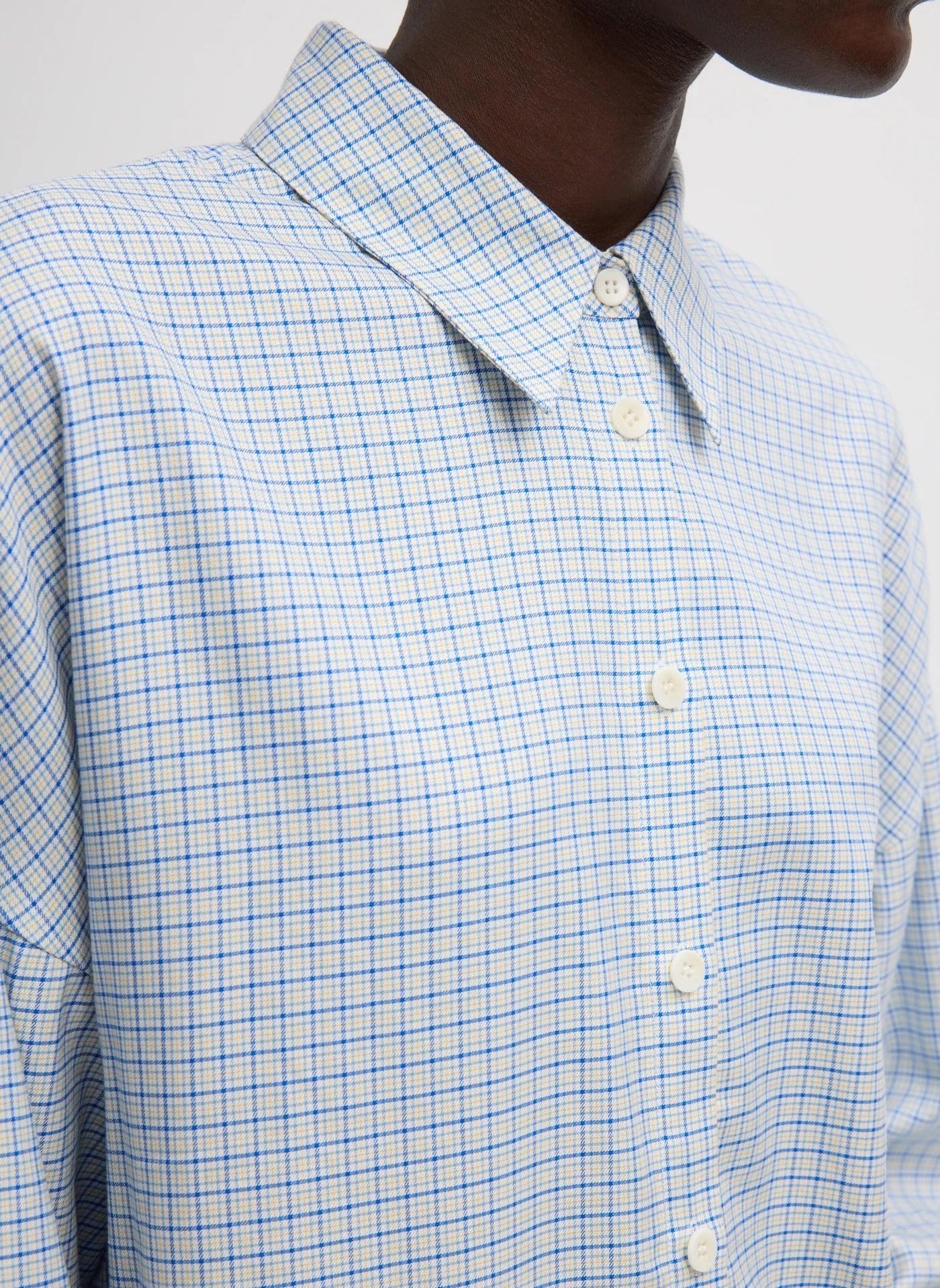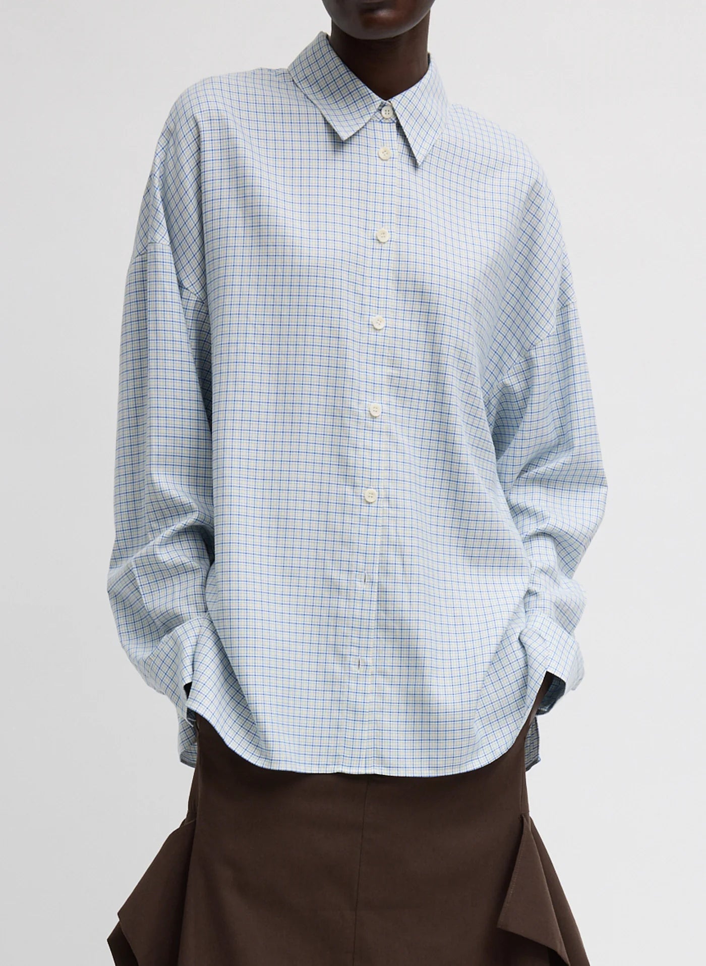A do-it-all shirt, designed with intention. The Linus Check Oversized Shirt is crafted in a drapey check shirting that moves easily on the body, with soft blue and yellow hues woven throughout. The result is a pattern that feels considered and versatile—an easy complement to Ring 2 browns and grounded neutrals alike. The oversized silhouette allows for flexibility in styling: wear it loose and undone for a relaxed feel, buttoned and tucked for a more polished approach, or layered under knits and outerwear as temperatures shift. Equally at home dressed up or down, this is the kind of piece that earns its place in rotation. Effortless, adaptable, and anything but predictable.