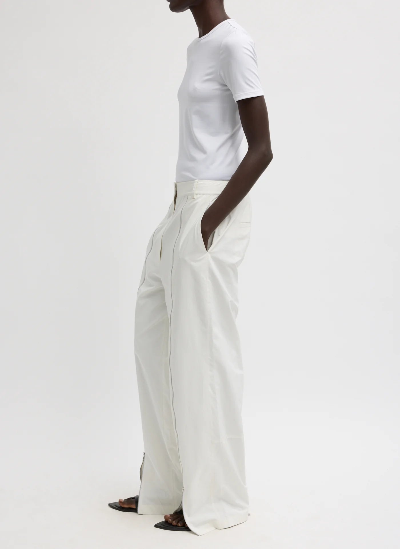 Nylon Zipper Trouser White
