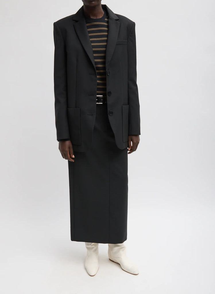 Tropical Wool Maxi Trouser Skirt in Black