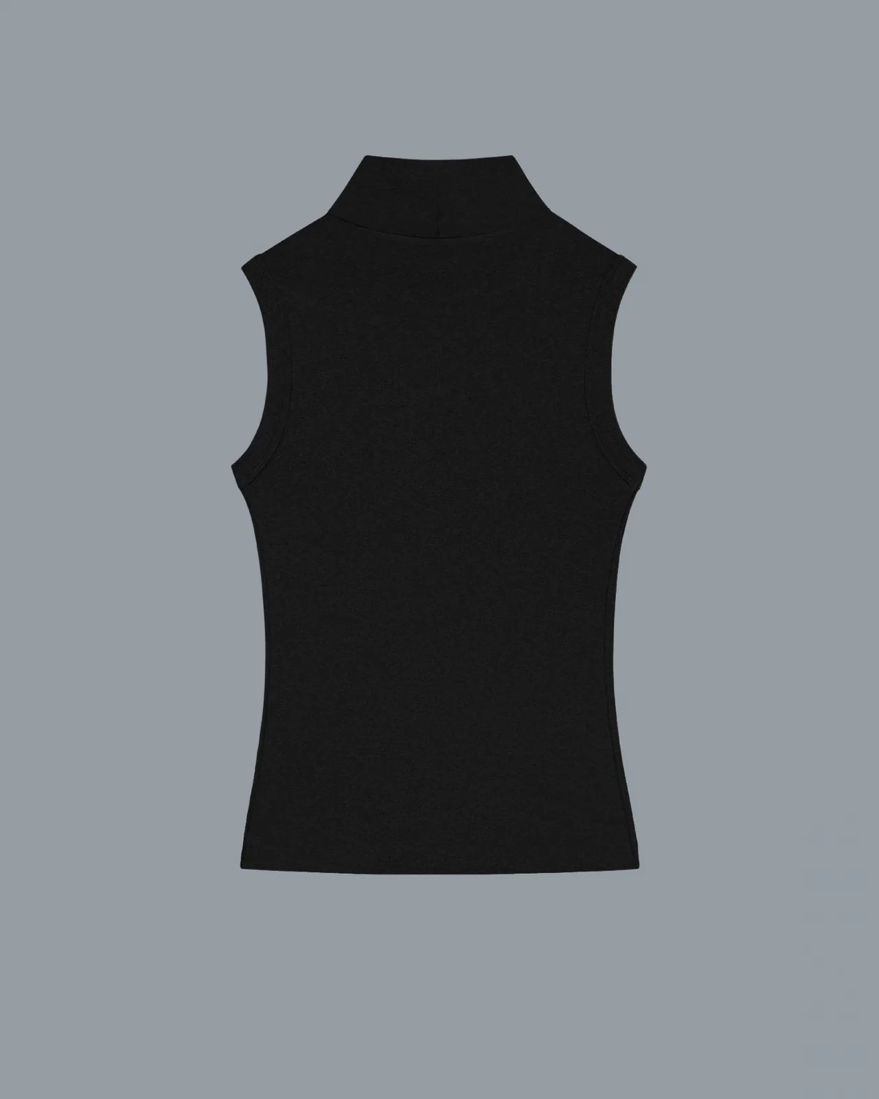 A tank with a roll neck and double-stitched cut-off seam on the back, crafted from 100% organic cotton 1 x 1 rib. Layer underneath or wear on its own.