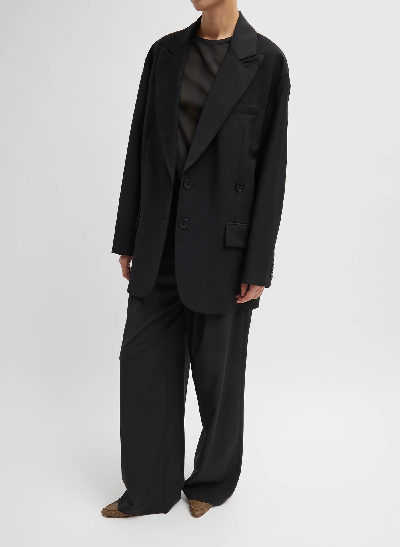 This assortment serves as your WOFs (Without Fails) and are designed to create space in your wardrobe for creativity and experimentation. No matter how extreme your closet may become, these pieces serve as the grounding element that ties everything together. Crafted from our signature virgin wool blend, you can wear this all year round. The Tropical Wool Liam Blazer is a crowd favorite and Tibi’s most versatile cut. The Liam pairs back to everything as the grounding element in every outfit and can be worn 12 months out of the year.