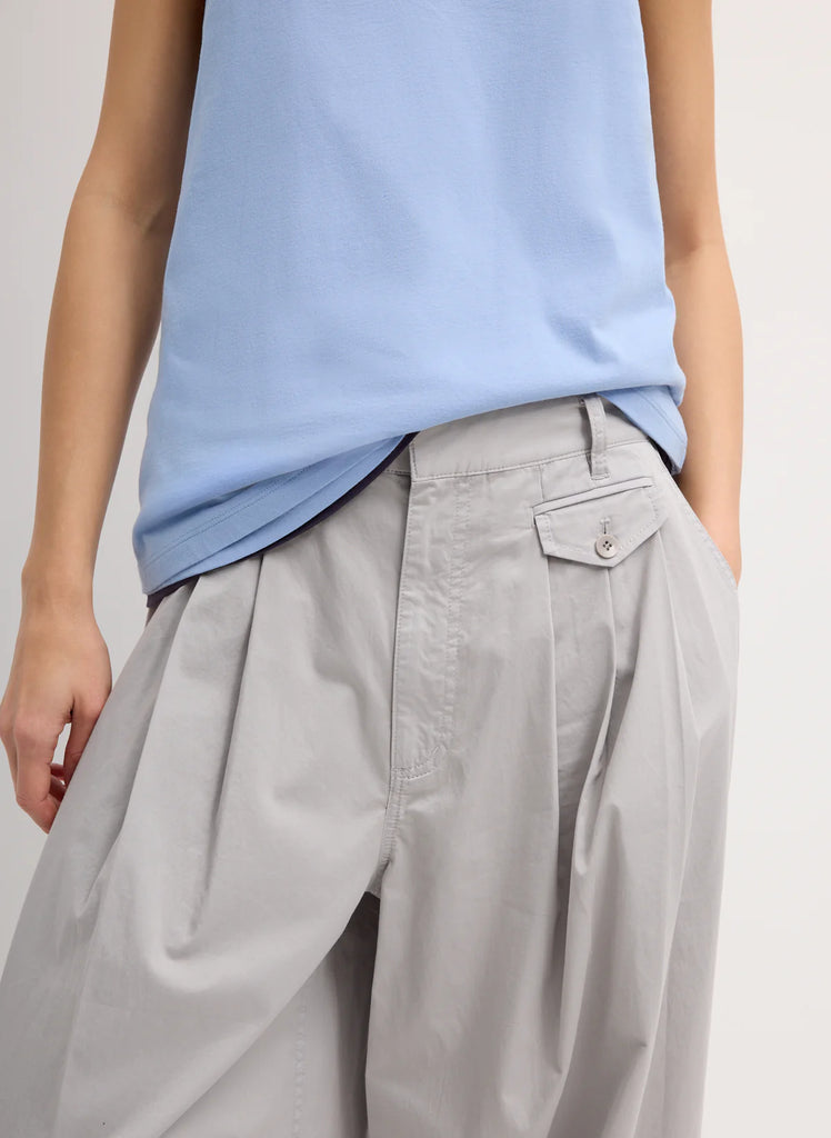 Garment Dyed Silky Cotton Triple Pleat in Grey