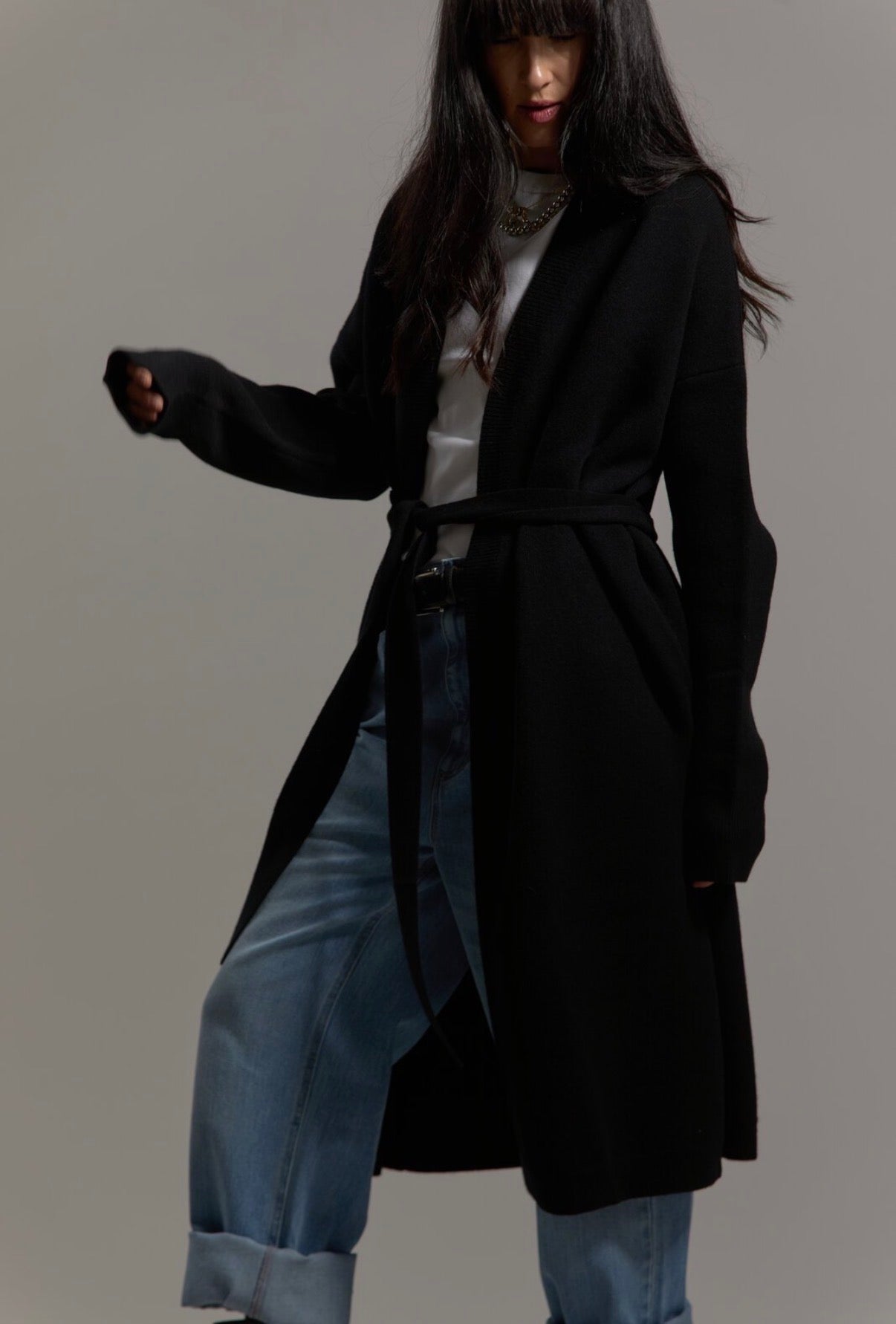 Cardi Wrap cozy up in this very rich and beautiful cashmere wrap cardigan. Leave it open or pair it with the matching belt.