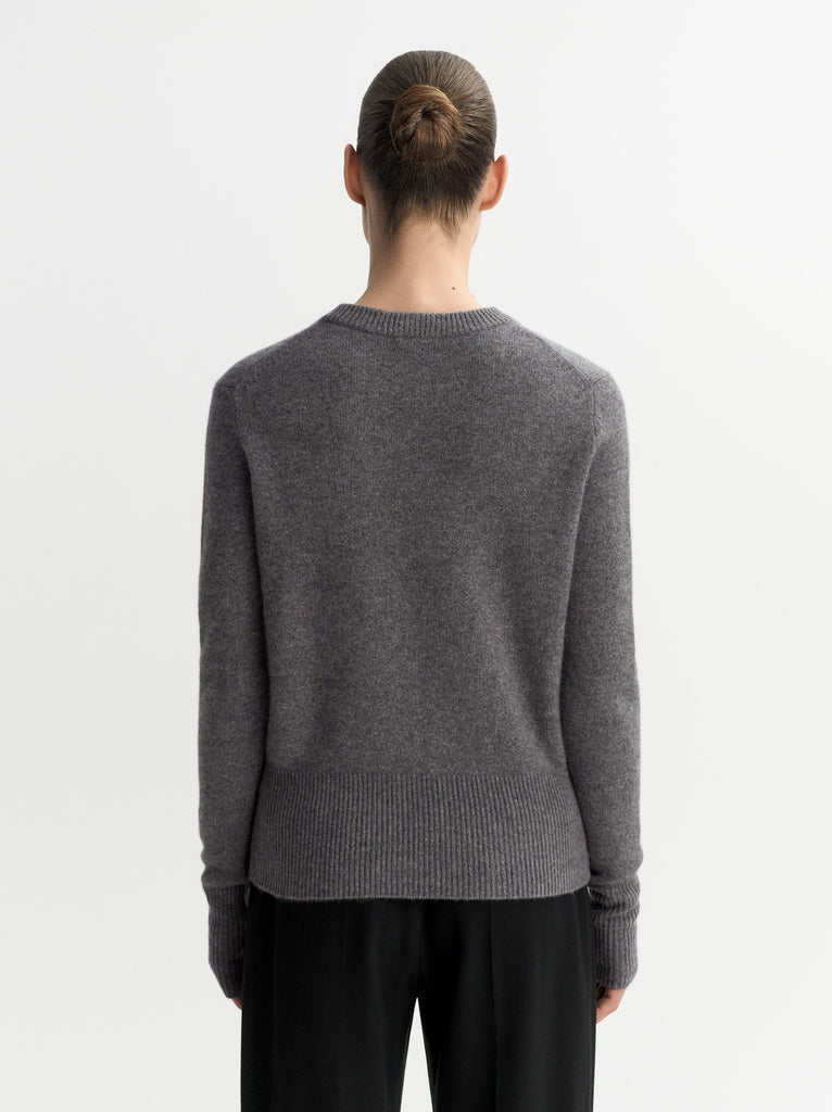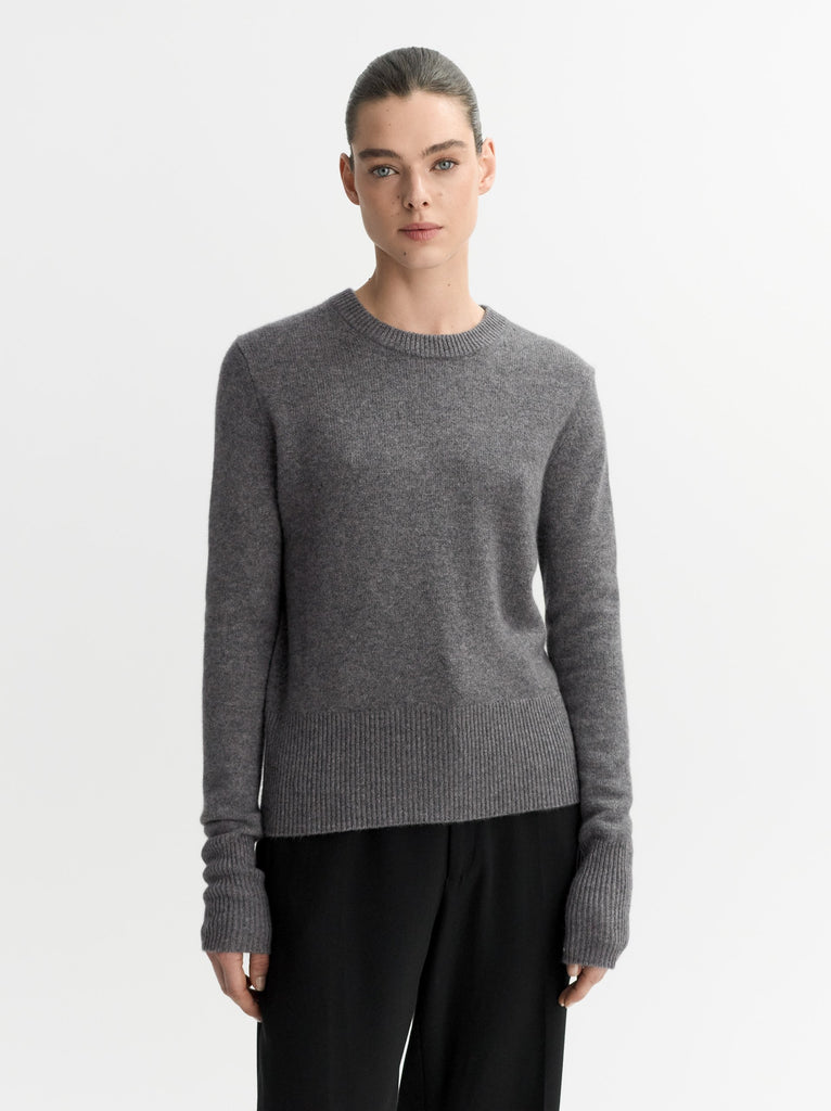 Wrap yourself in luxurious comfort with this Classic Cashmere Crewneck Sweater from Soft Goat. Crafted from 100% premium-quality cashmere, this timeless piece combines understated elegance with everyday ease. The classic silhouette offers a chic fit, while the finely ribbed cuffs and hem provide subtle structure. Its classic grey tone makes it an essential layering piece for any wardrobe — perfect for dressing up or down.