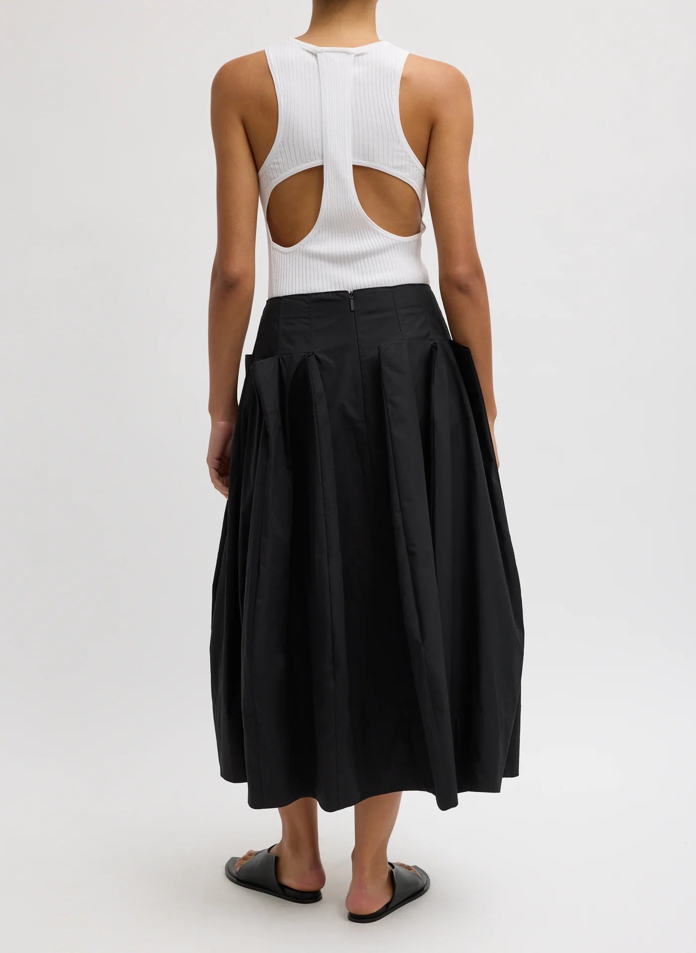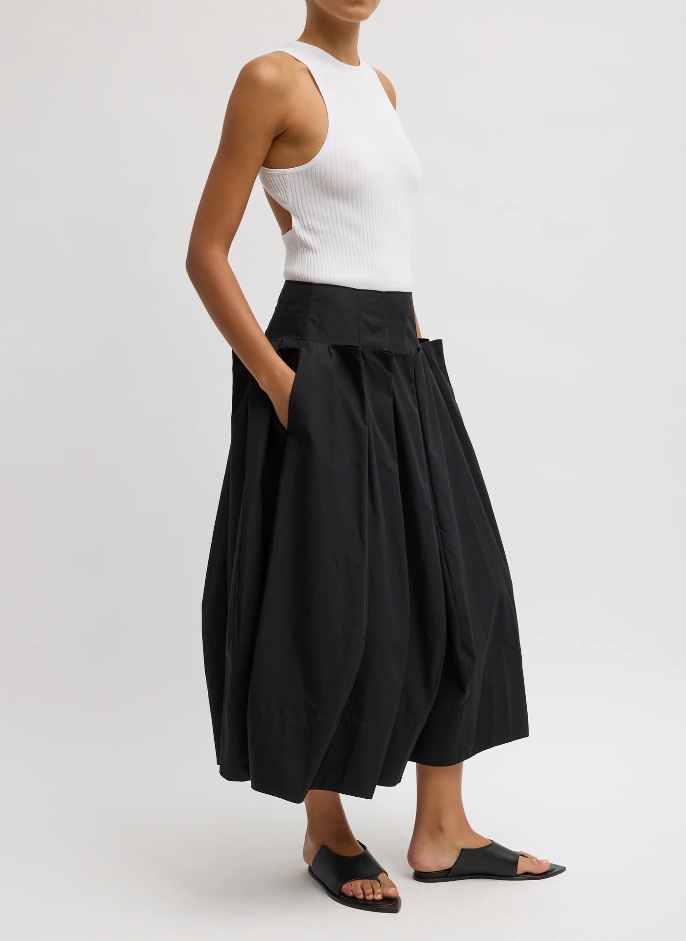 Compact Eco Poplin Pinched Pleat Skirt Black