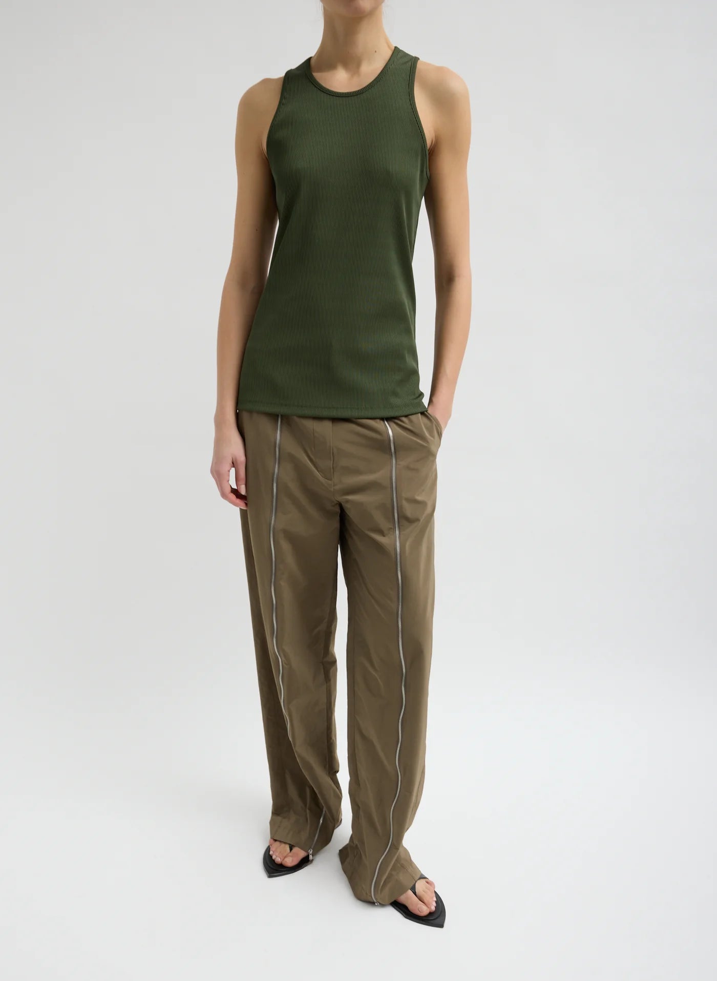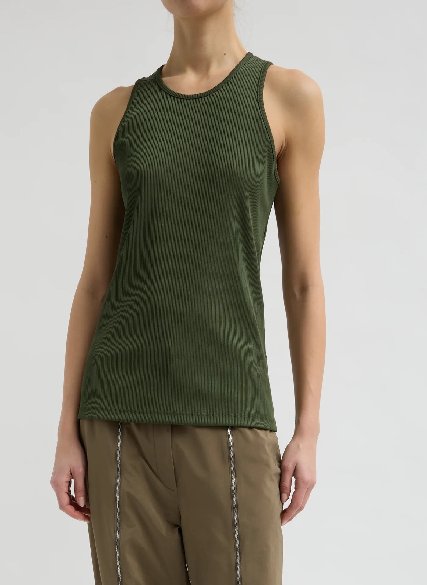 Stretch Luxe Rib Tank Top Dark Moss