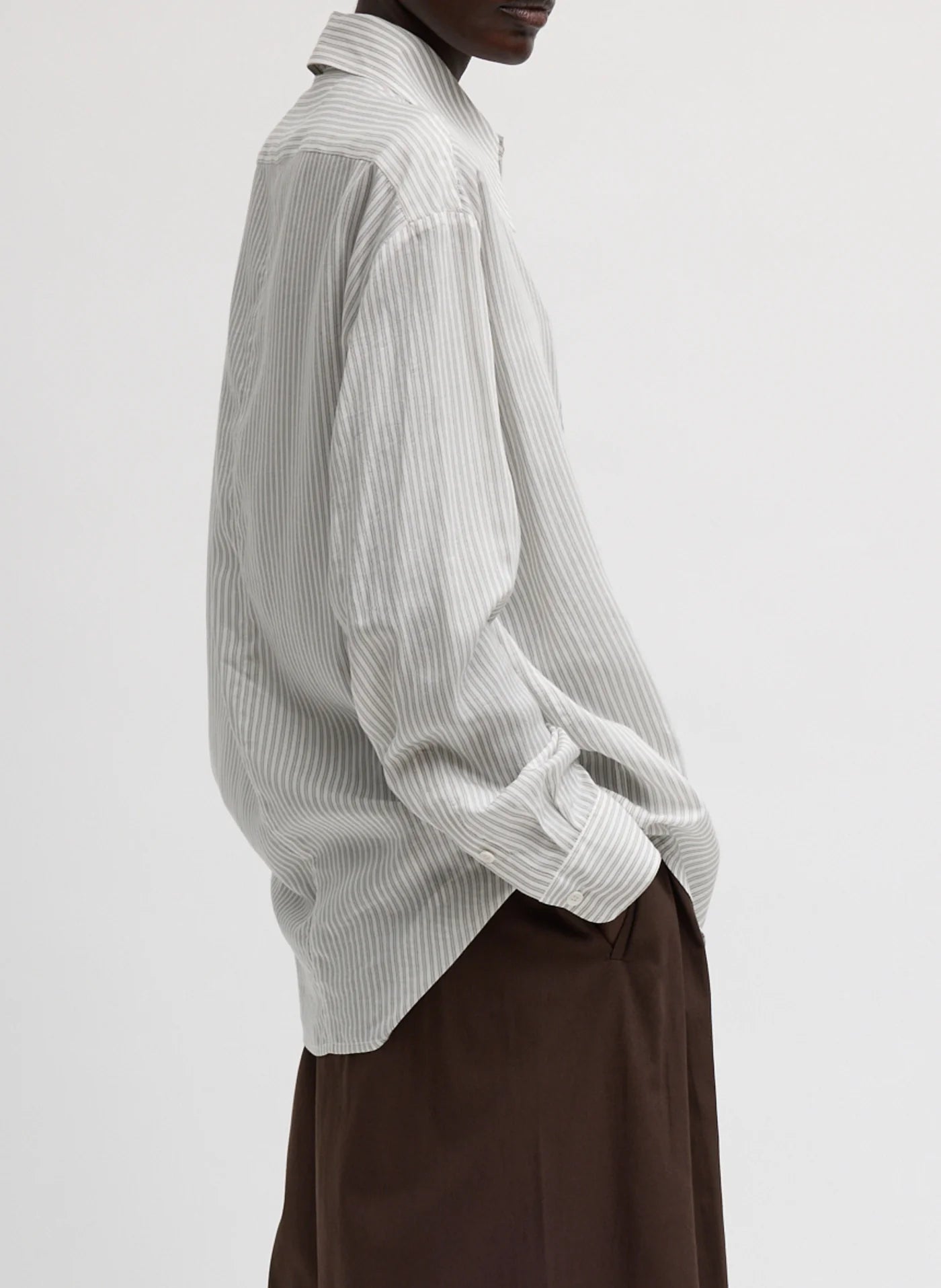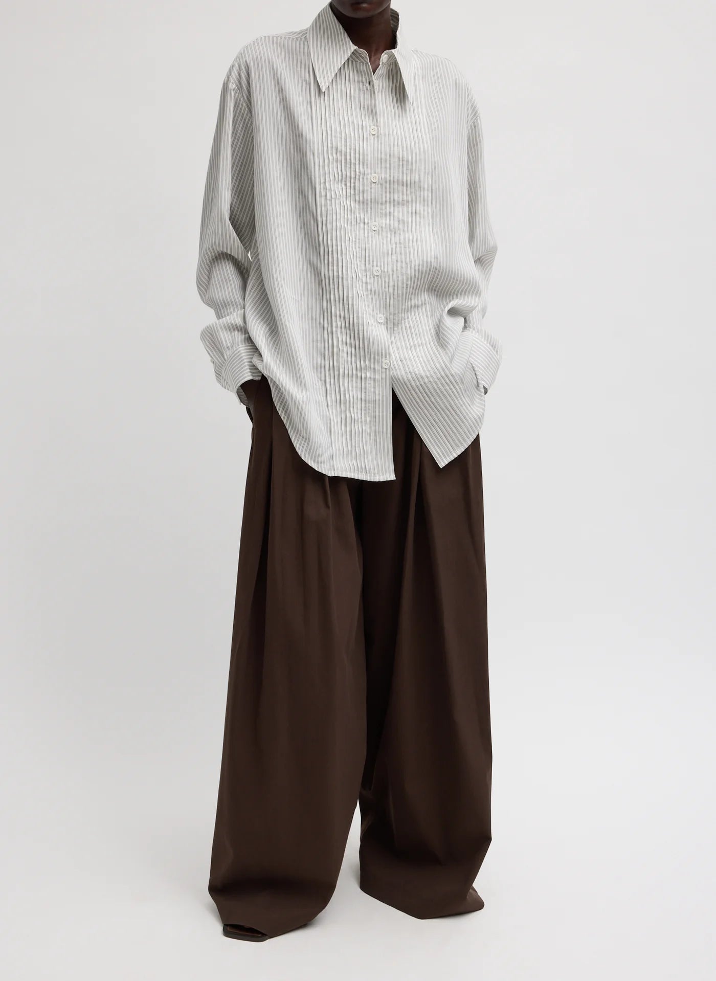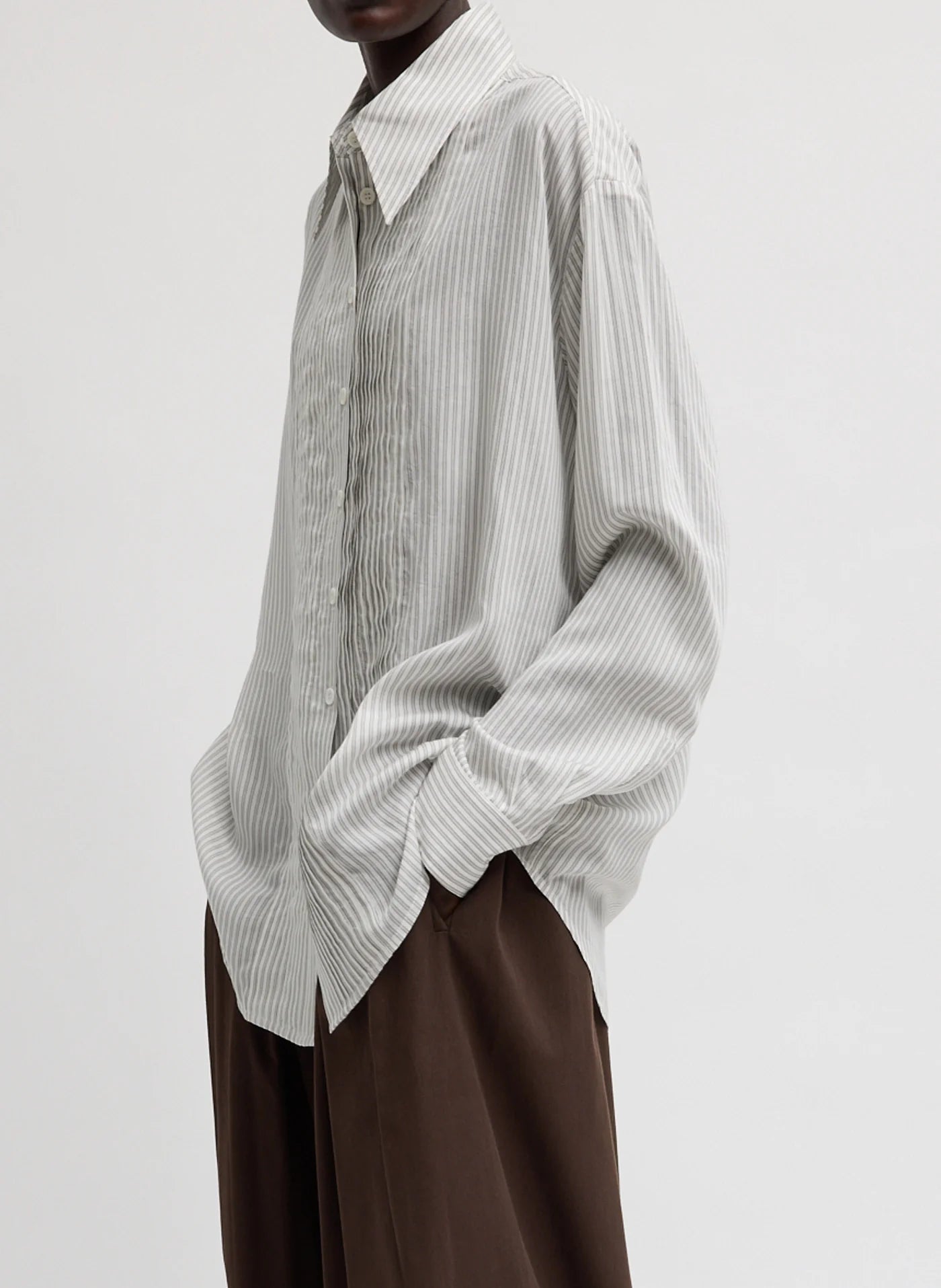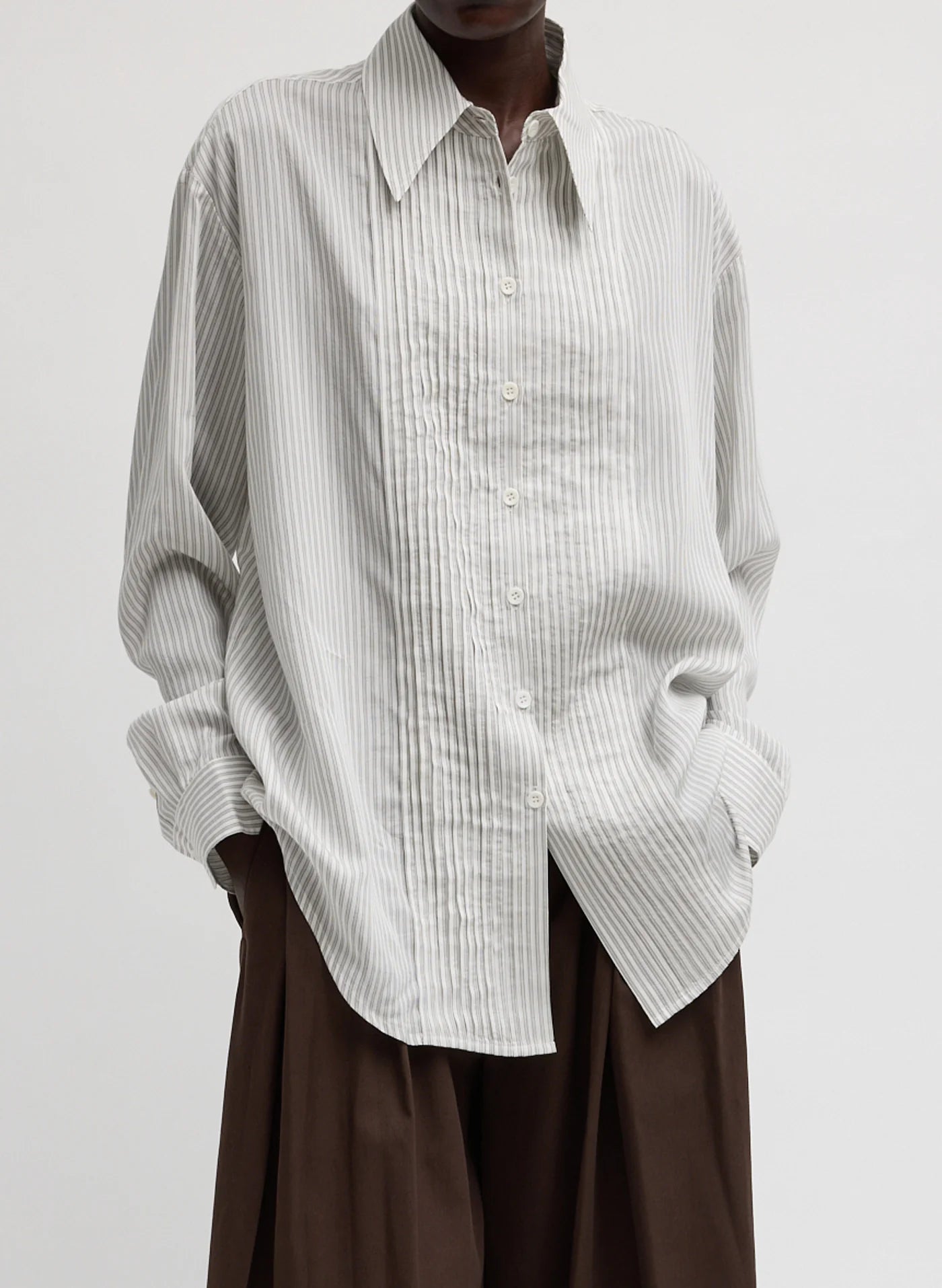 Ultra Light Silk Tencel Striped Pintucked Shirt