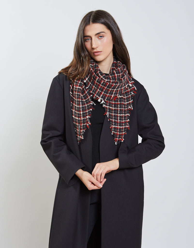 Coming from the archive of Faliero Sarti, the rhombus scarf Lida has a mixed fabric of natural fibers. A multicolored geometric pattern characterizes the texture for a refined style. Thanks to the refined shape will be the chic accessory of the new winter wardrobe.