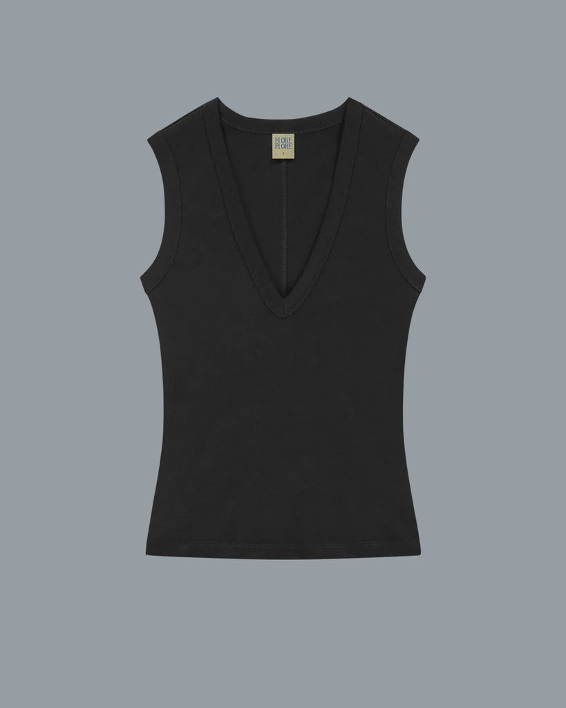 A deep v-neck tank with a scooped-out armhole designed for a modern look, made from medium-weight organic cotton. Designed to be worn with a bra, it pairs perfectly with a skirt or tailored trousers.