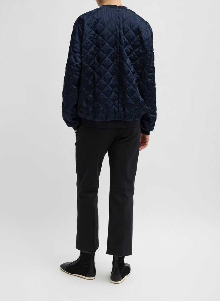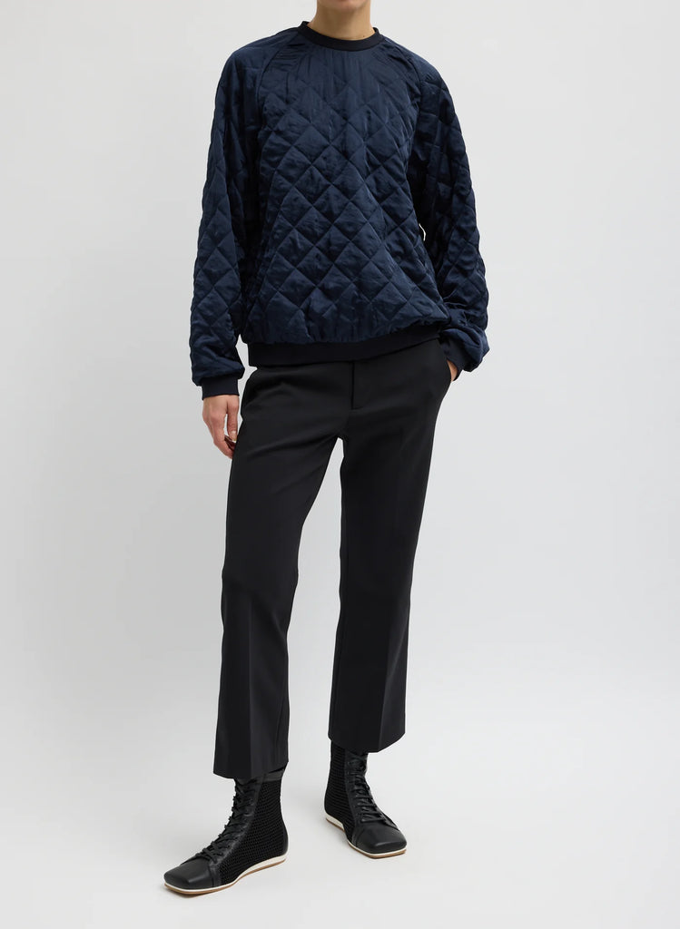 Crafted from an ultra-soft Italian sateen with a subtle quilted finish, the Cozy Quilting Sweatshirt brings a refined edge to comfort dressing. Designed with a relaxed, eased-out silhouette, it embodies modern ease and elevated texture. Available in Navy and White, this versatile layer transitions effortlessly between PDW moments—perfect styled up or down, season after season.