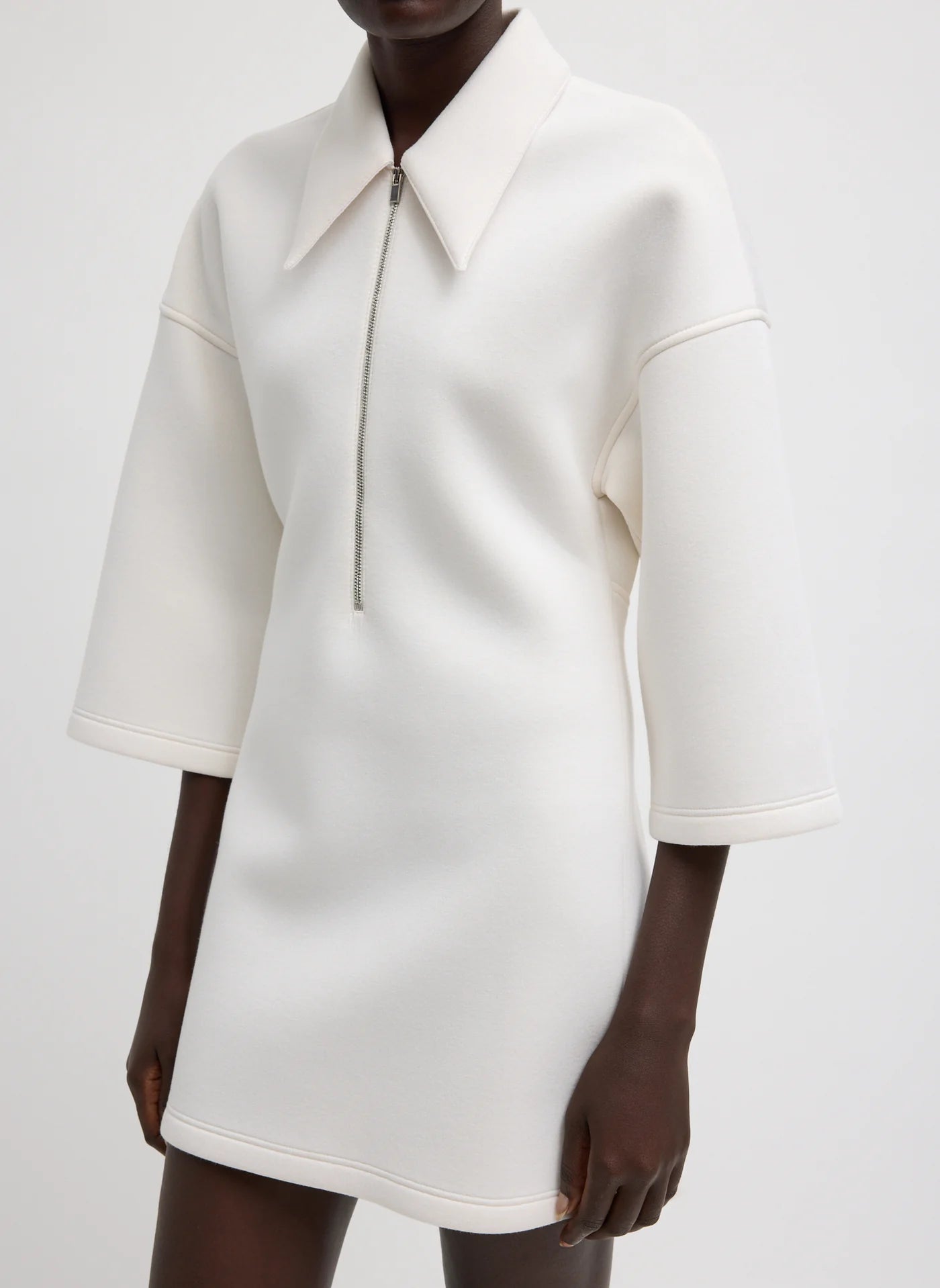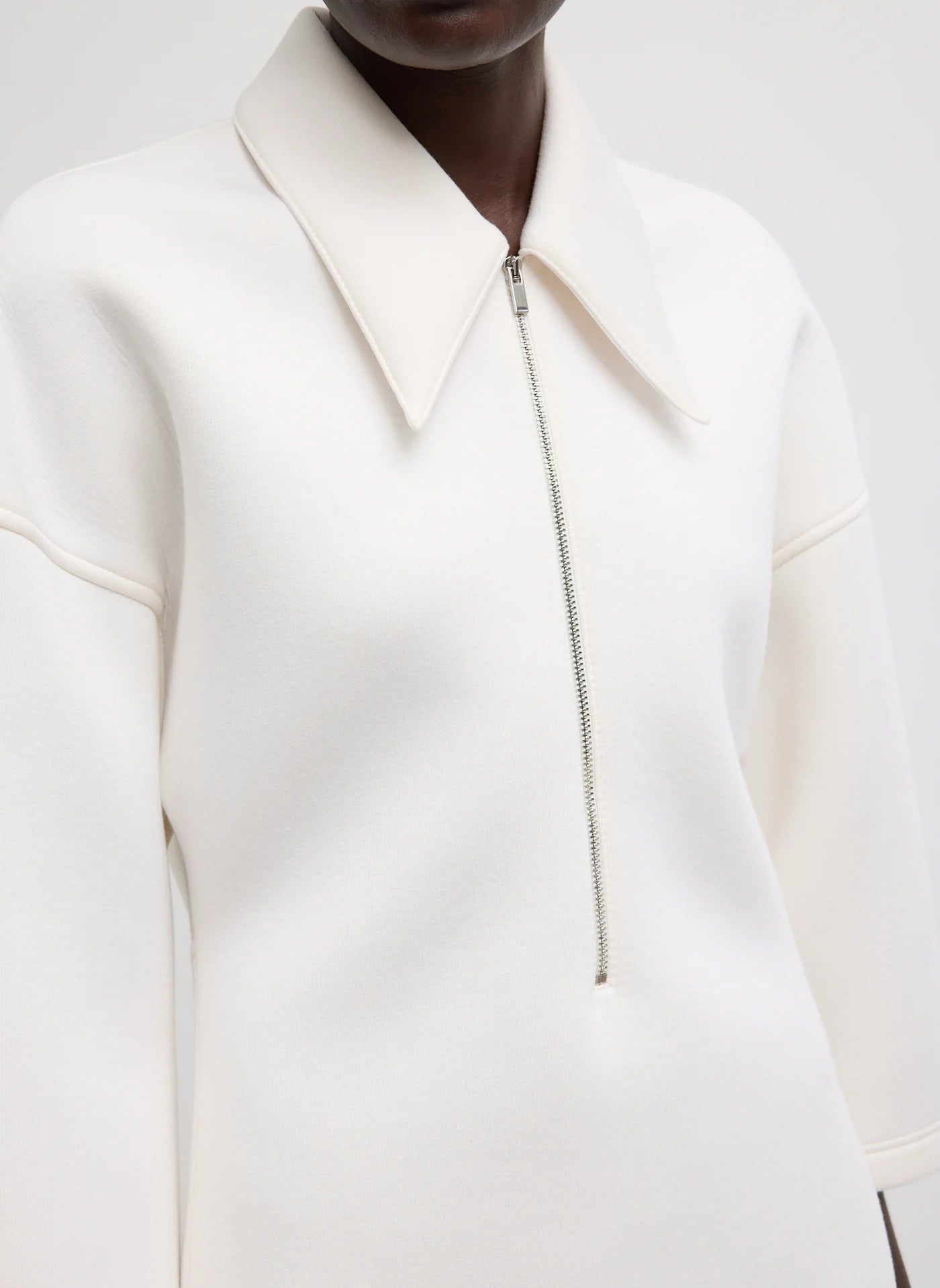 Bonded Viscose Zip Front Short Sleeve Tunic Ivory