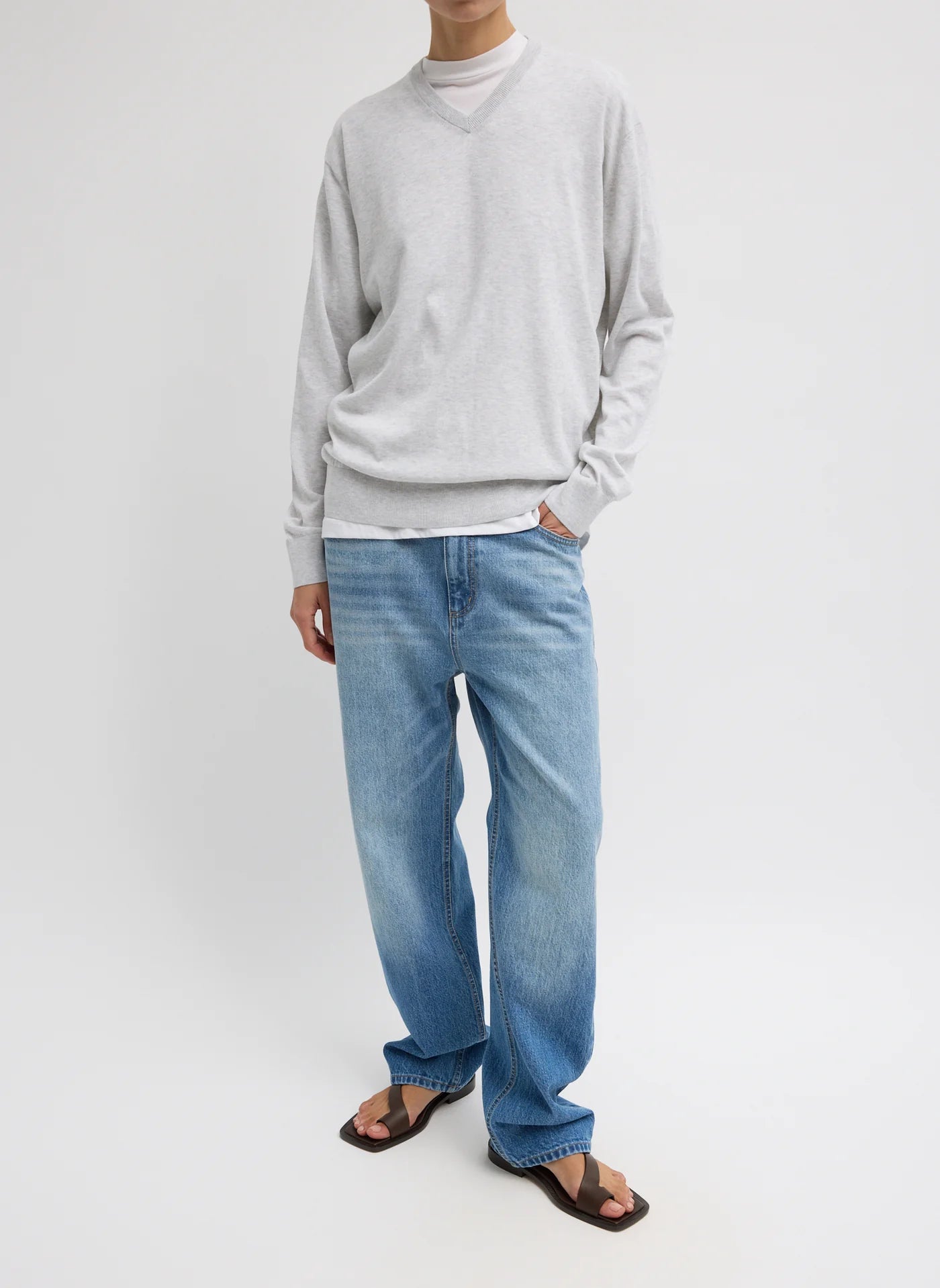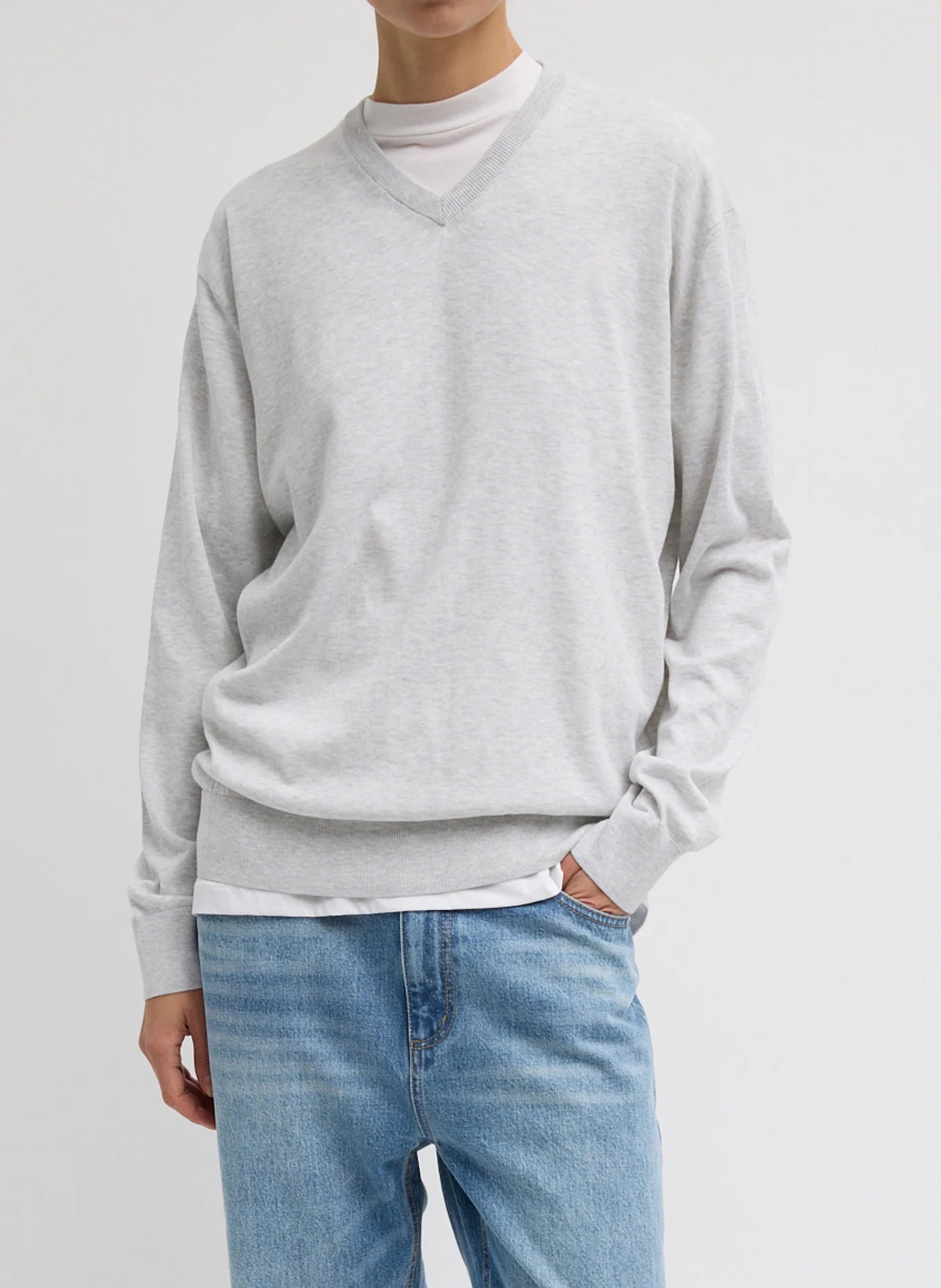 Super Fine Gauge Perfect VNeck Pullover Grey