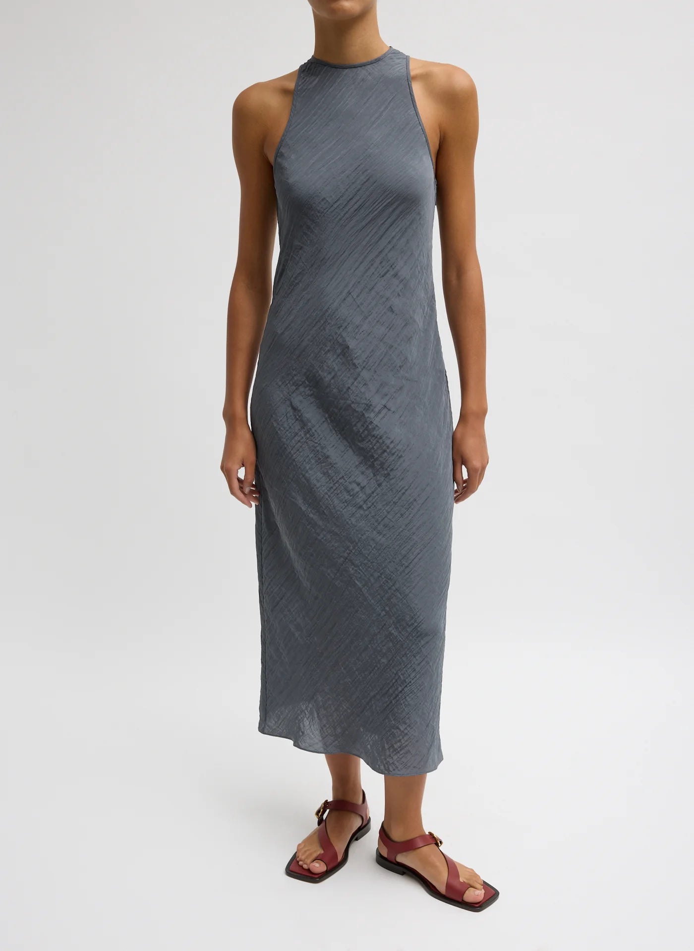 The Crinkle Slip Midi Bias Dress Dark Grey
