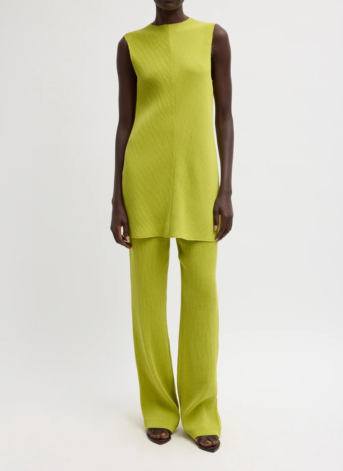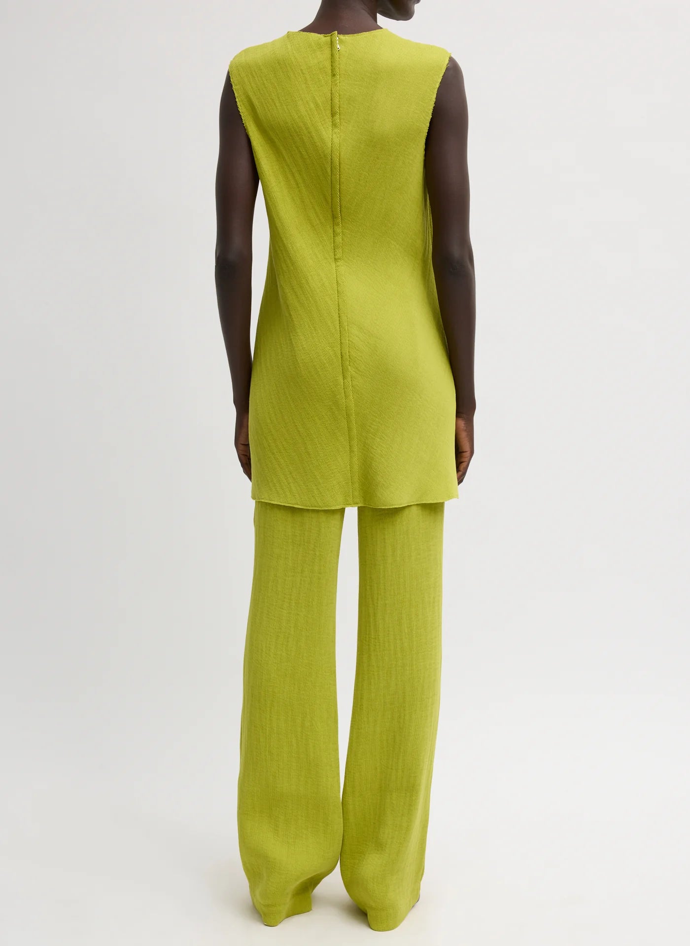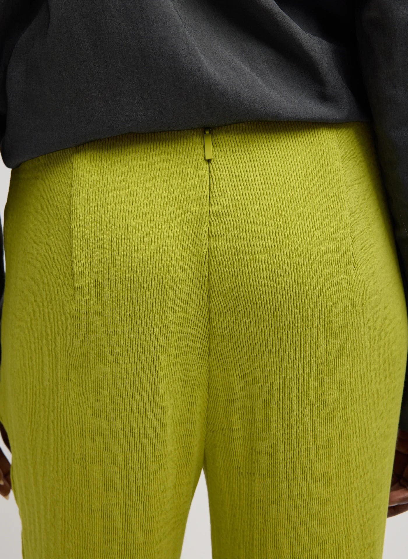 The Viscose Plissé Corbit Pant brings ease and refinement to everyday dressing. Crafted from the same rich viscose plissé, it features a slight bootcut silhouette designed to create movement and balance. Finished with a back zipper closure, this pant can be styled with the coordinating dresses for a layered set, paired with tunic tops from the collection, or worn on its own as a versatile wardrobe staple. Available in Black and Ring 4 Pea Pod.