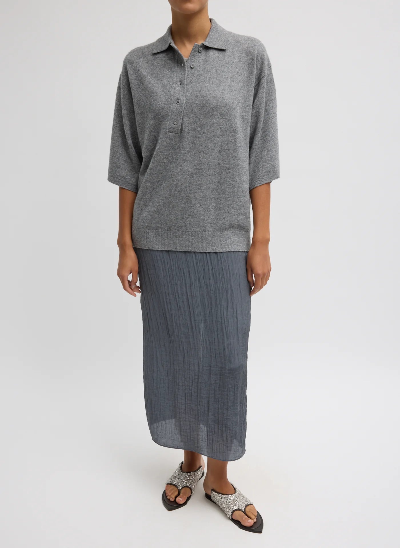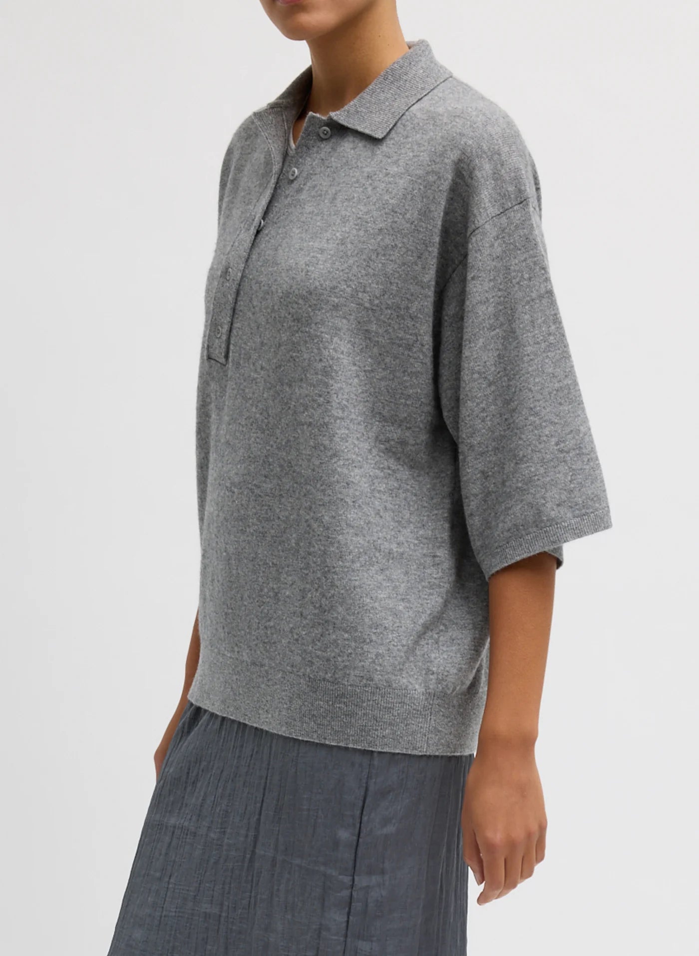 Washable Cashmere Oversized Easy Polo Grey