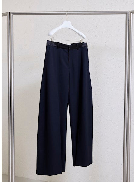 With a Mode Rose waist and wide-leg silhouette, they create an elongated, fluid line that moves beautifully. Minimalist tailoring and clean finishes emphasize modern simplicity, while belt loops and a classic front closure ensure practicality and versatility.